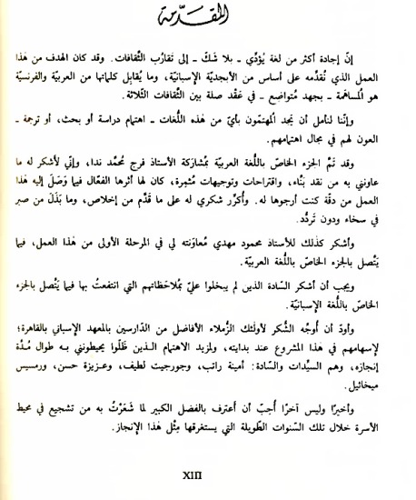 القاموس الذي نقلب صفحاته هو قاموس ثلاثي اللغة، وضعته "علا عبد الحميد سليمان" ليفي بحاجة الطالب الإسباني المقيم في فرنسا أو إحدى الدول الناطقة باللغة العربية أو لهؤلاء المفكرين والباحثين الذين هم على اتصال بالثقافة الفرنسية والإسبانية لهؤلاء أو لغيرهم مما يودون الإحاطة بهاتين اللغتين، وقد جاء مرتباً ترتيبا ألفبائياً بحيث أوردت المؤلفة المفردات الإسبانية وما يقابلها من مفردات باللغتين الفرنسية والعربية. وقد جاء هذا القاموس شاملاً ومغطيا للدقائق اللغوية والموثقة والمتطابقة.