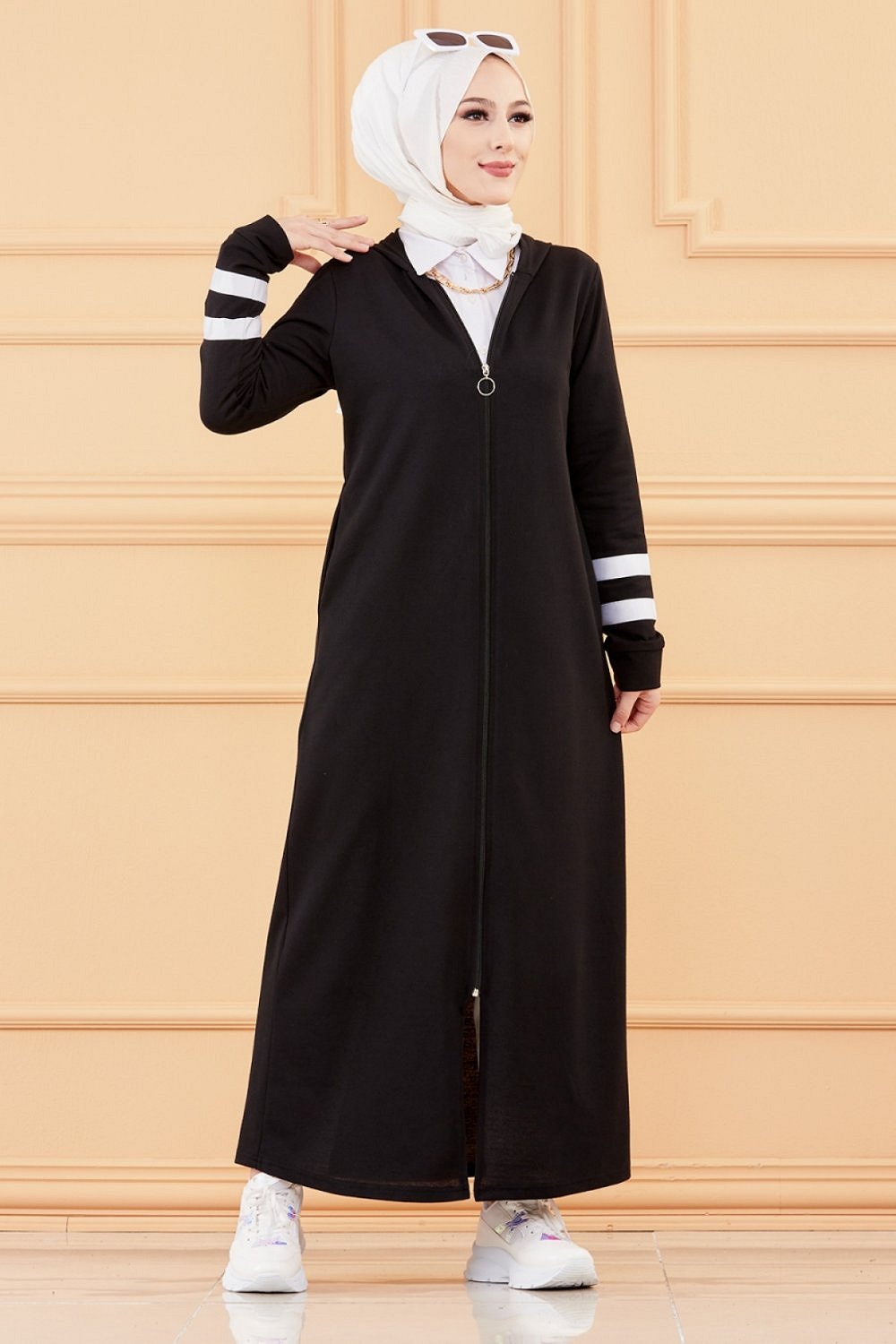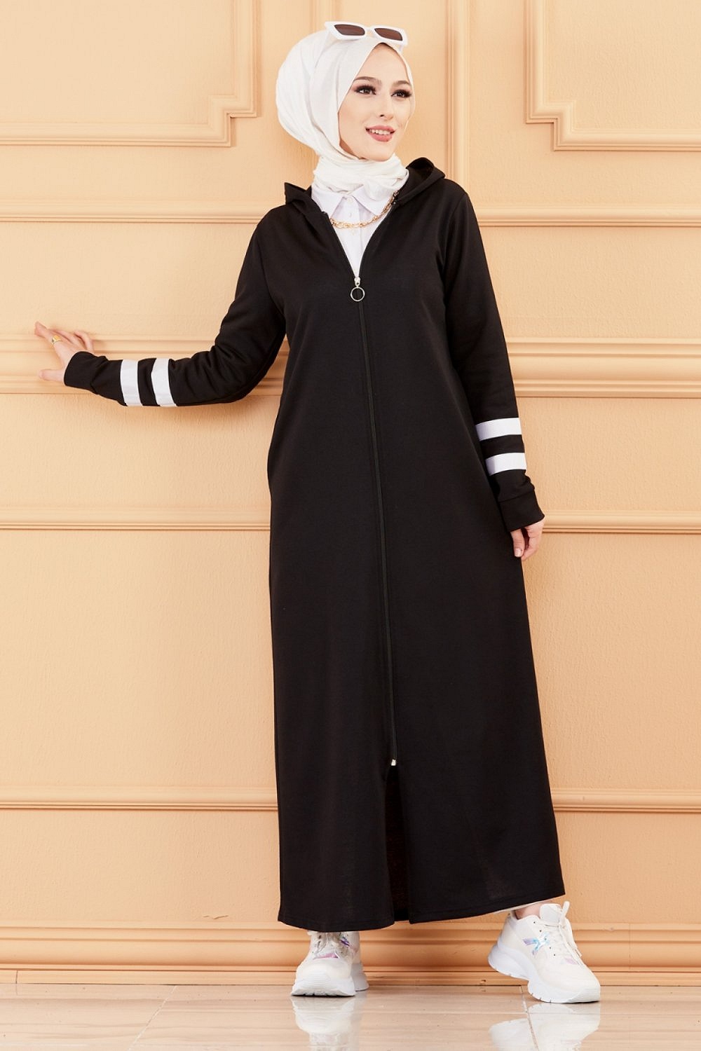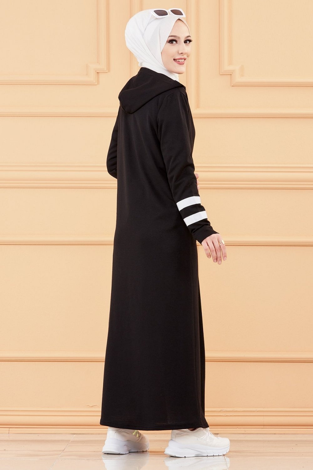 Robe longue style moderne avec capuche (Vetement hijab pour musulmane) - Couleur noir - REF. 35373 (27.00 €) - En Promotion à 19.00 €