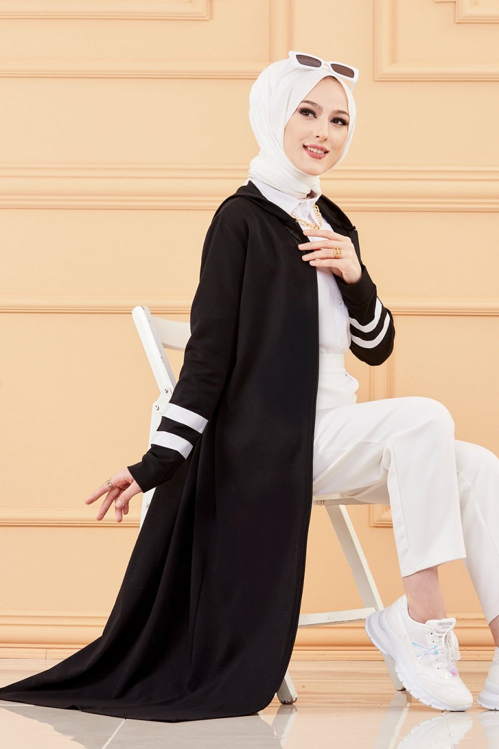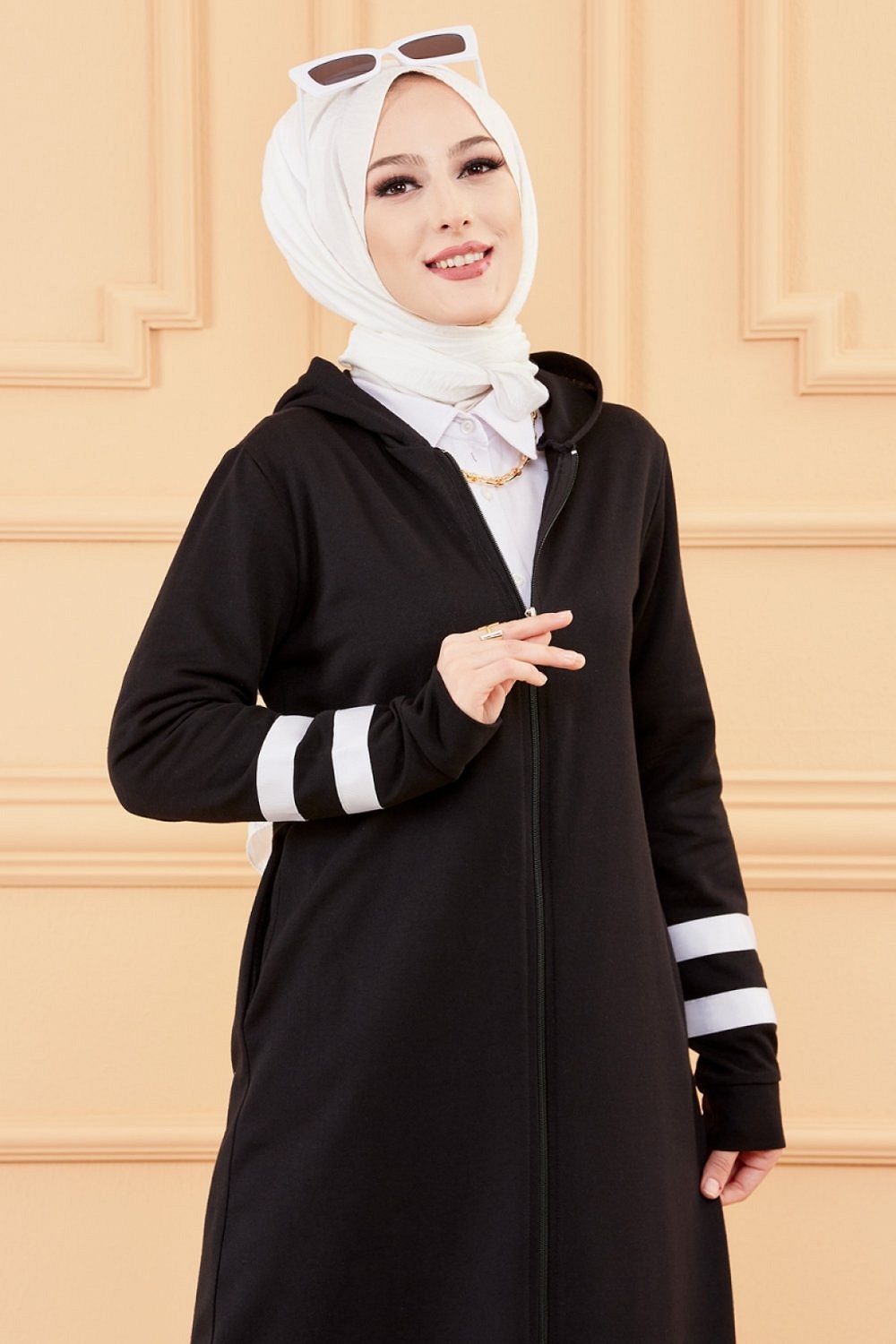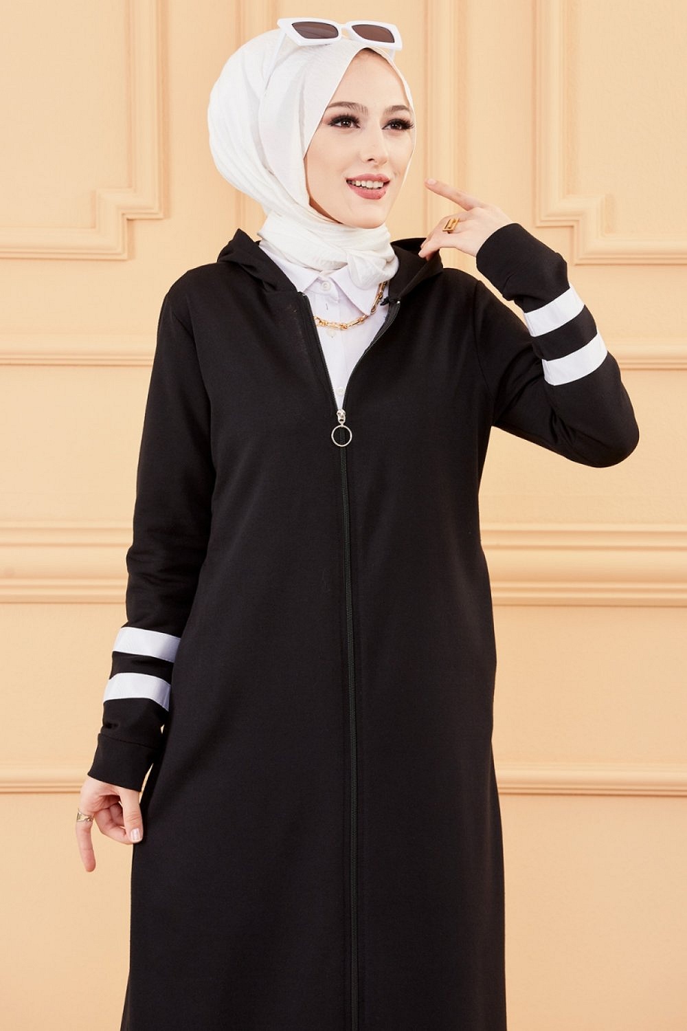Robe longue style moderne avec capuche (Vetement hijab pour musulmane) - Couleur noir - REF. 35373 (27.00 €) - En Promotion à 19.00 €