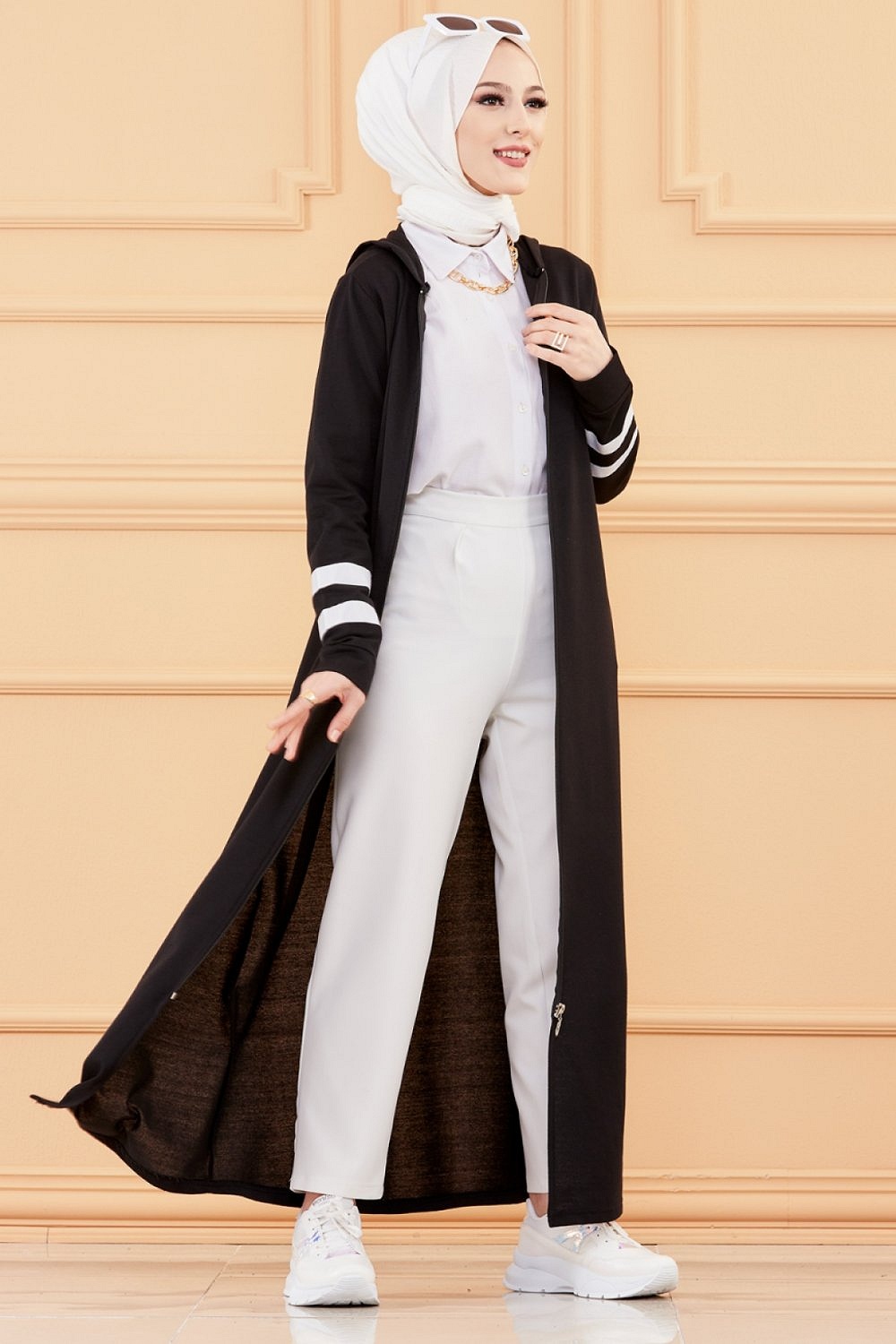 Djellaba moderne à capuche pour femme (Mode Musulmane) - Couleur noir Vetement & Accessoire