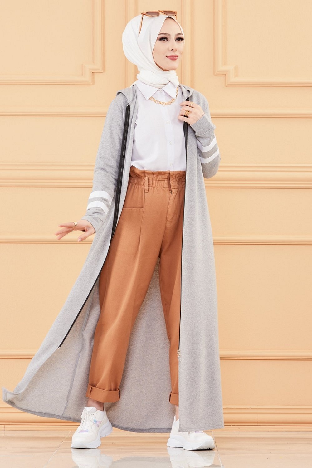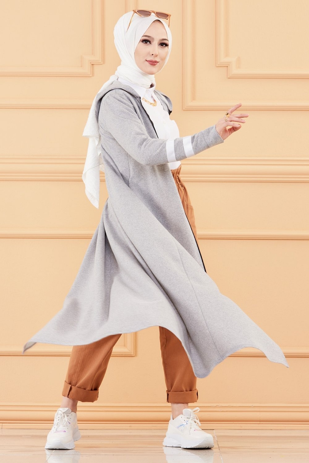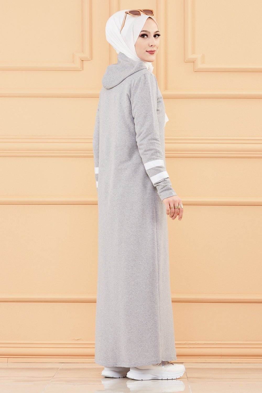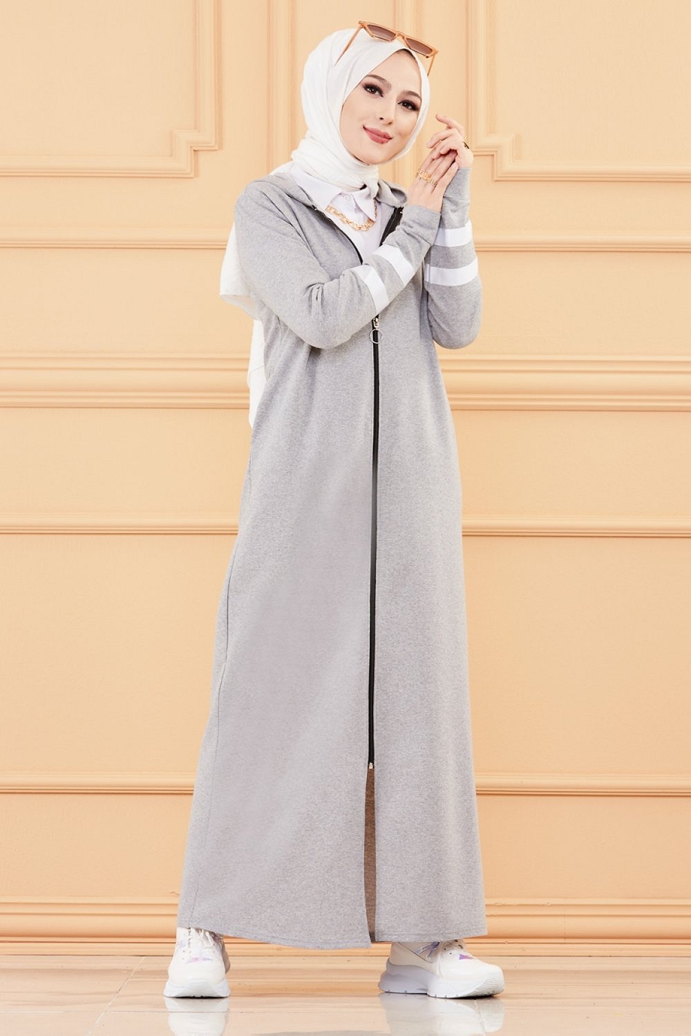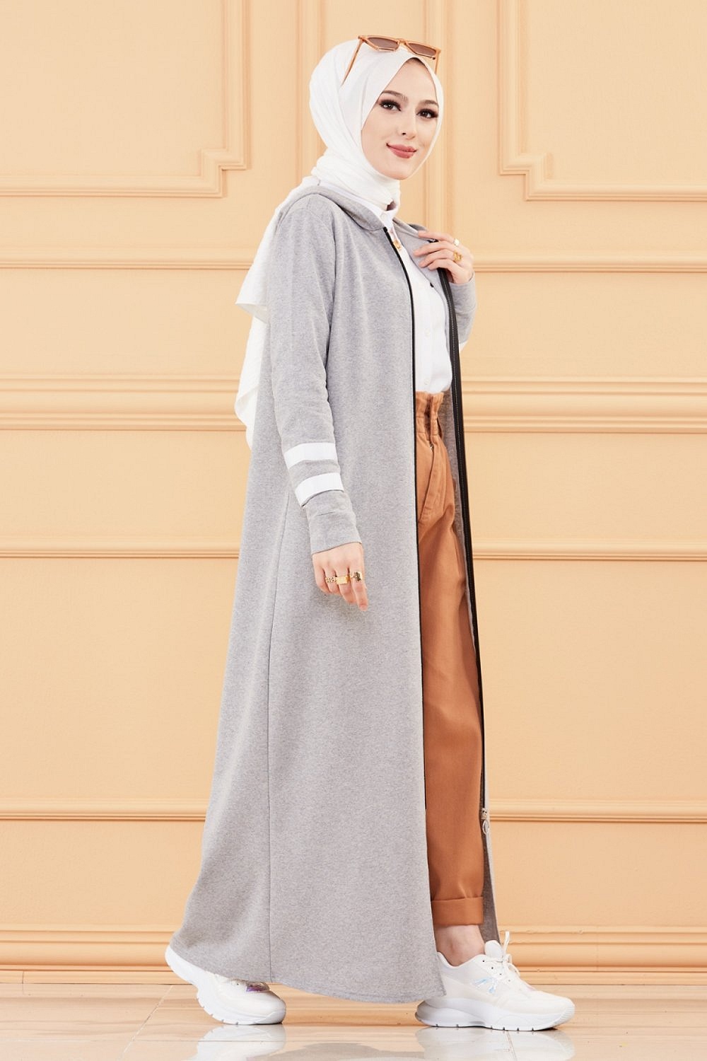 Djellaba moderne à capuche pour femme (Mode islamique) - Couleur gris Vetement & Accessoire