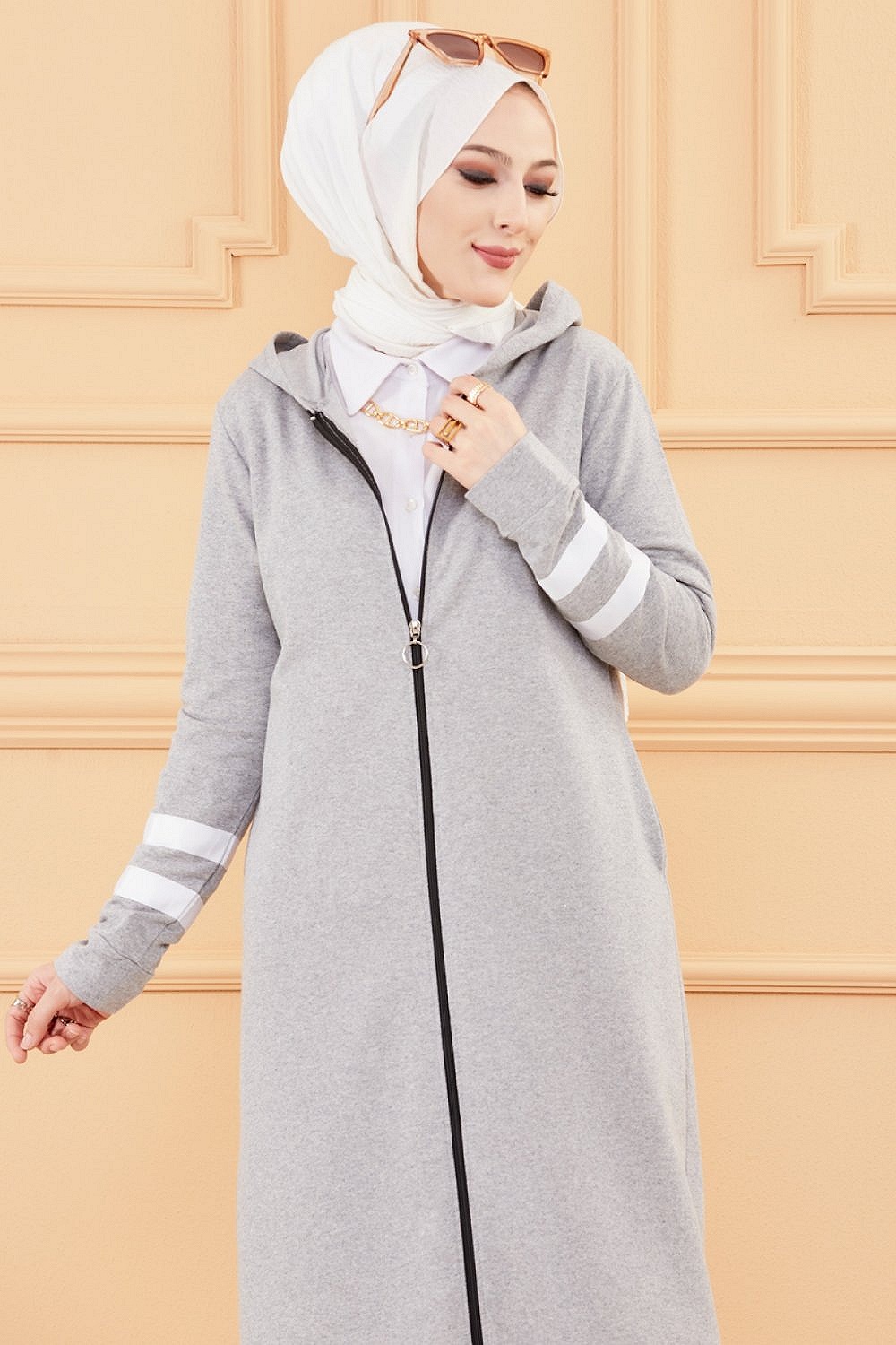 Veste longue zippée style sportswear (Robe Sport pour femme voilée) - Couleur gris foncé (Anthracite) - REF. 33151 (24.90 €) - En Promotion à 19.90 €