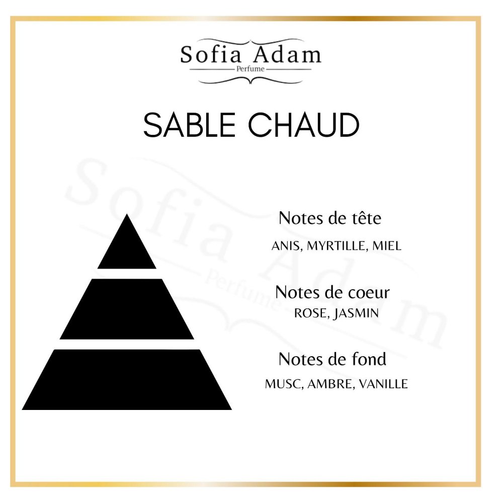 Le riche parfum floral de Musk s’ouvre sur une rose intense et un pamplemousse avant de passer dans la vanille crémeuse et le chèvrefeuille doux comme le SABLE CHAUD .