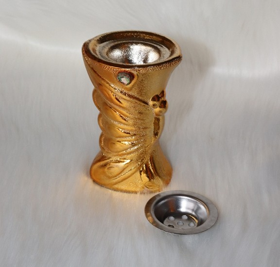 Encensoir en porcelaine doré pour brûler de l'encens avec du charbon.