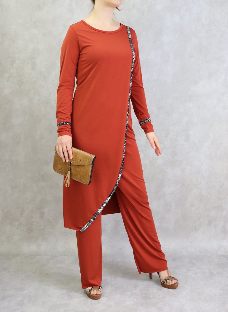 Ensemble 2 pieces effet portefeuille - Couleur Brique