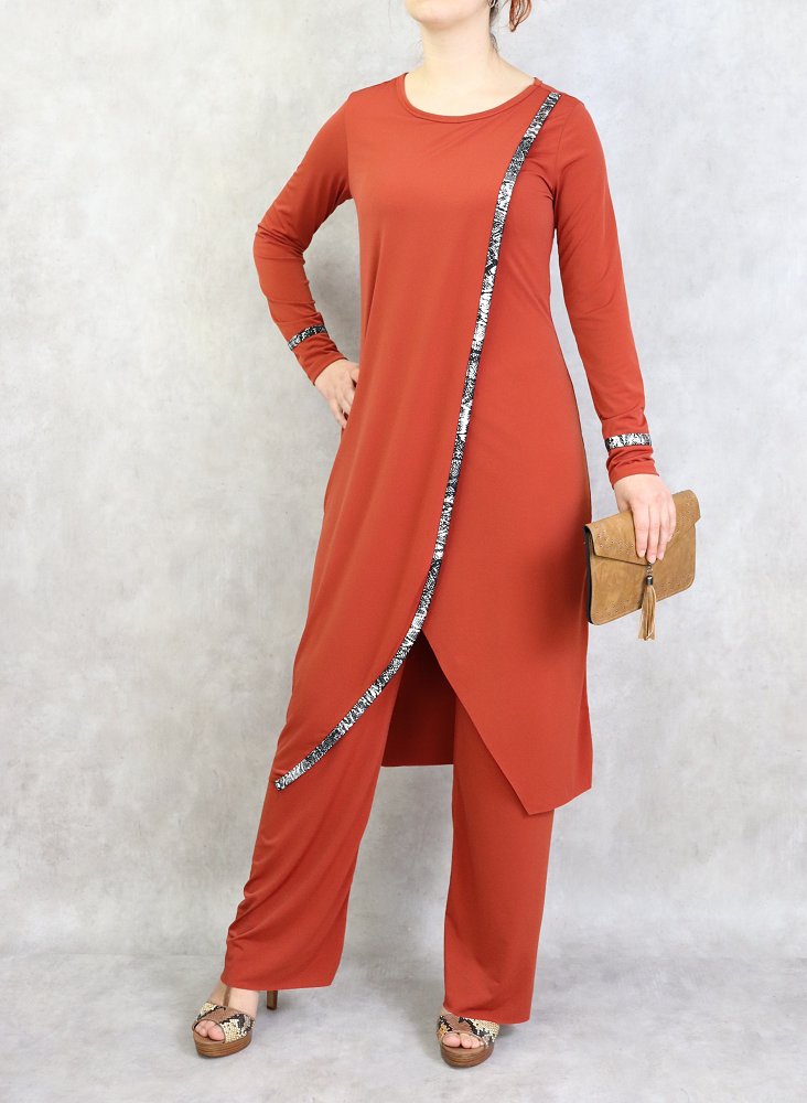 Ensemble 2 pièces effet portefeuille - Couleur Brique Vetement & Accessoire