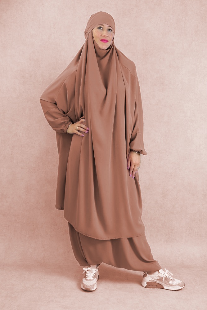 Ensemble Jilbab femme deux (2) pieces cape et sarouel (pantalon) - Couleur Marron clair