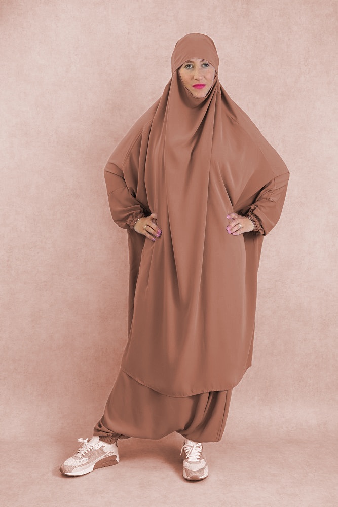 Ensemble Jilbab femme deux (2) pièces cape et sarouel (pantalon) - Couleur Marron clair Vetement & Accessoire Coup de coeur