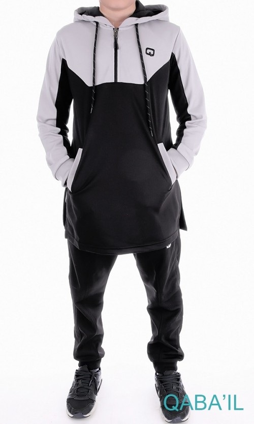 Ensemble bicolore sarouel et sweat long capuche, de 3 à 8 ans, marque Qaba'il.