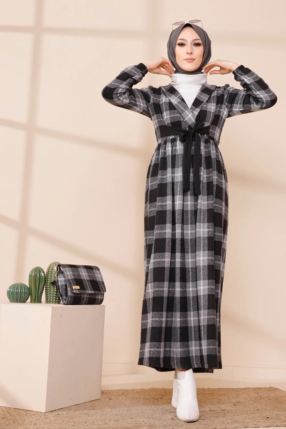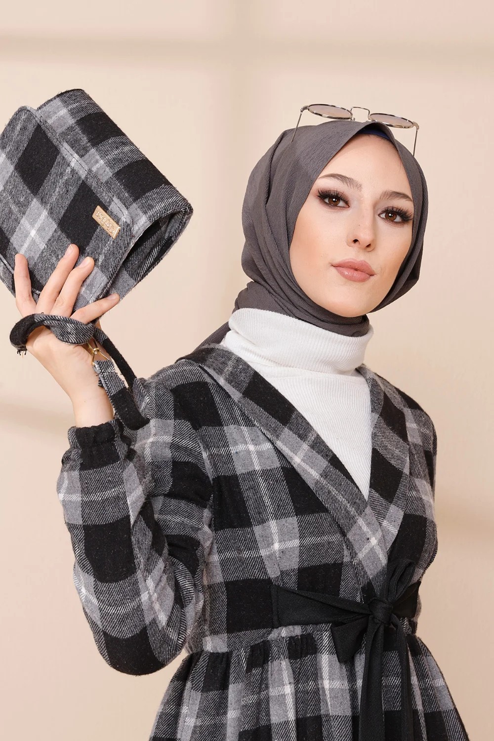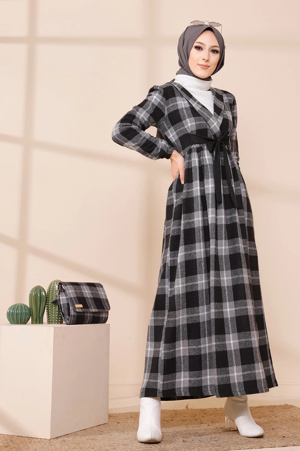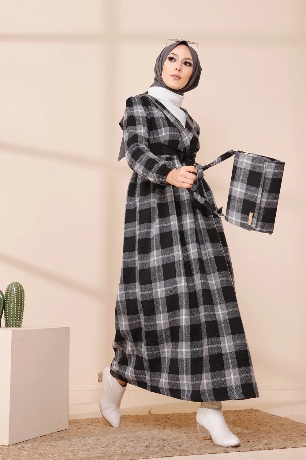 Ensemble Robe à carreaux avec sac à main assorti - Couleur noir Vetement & Accessoire