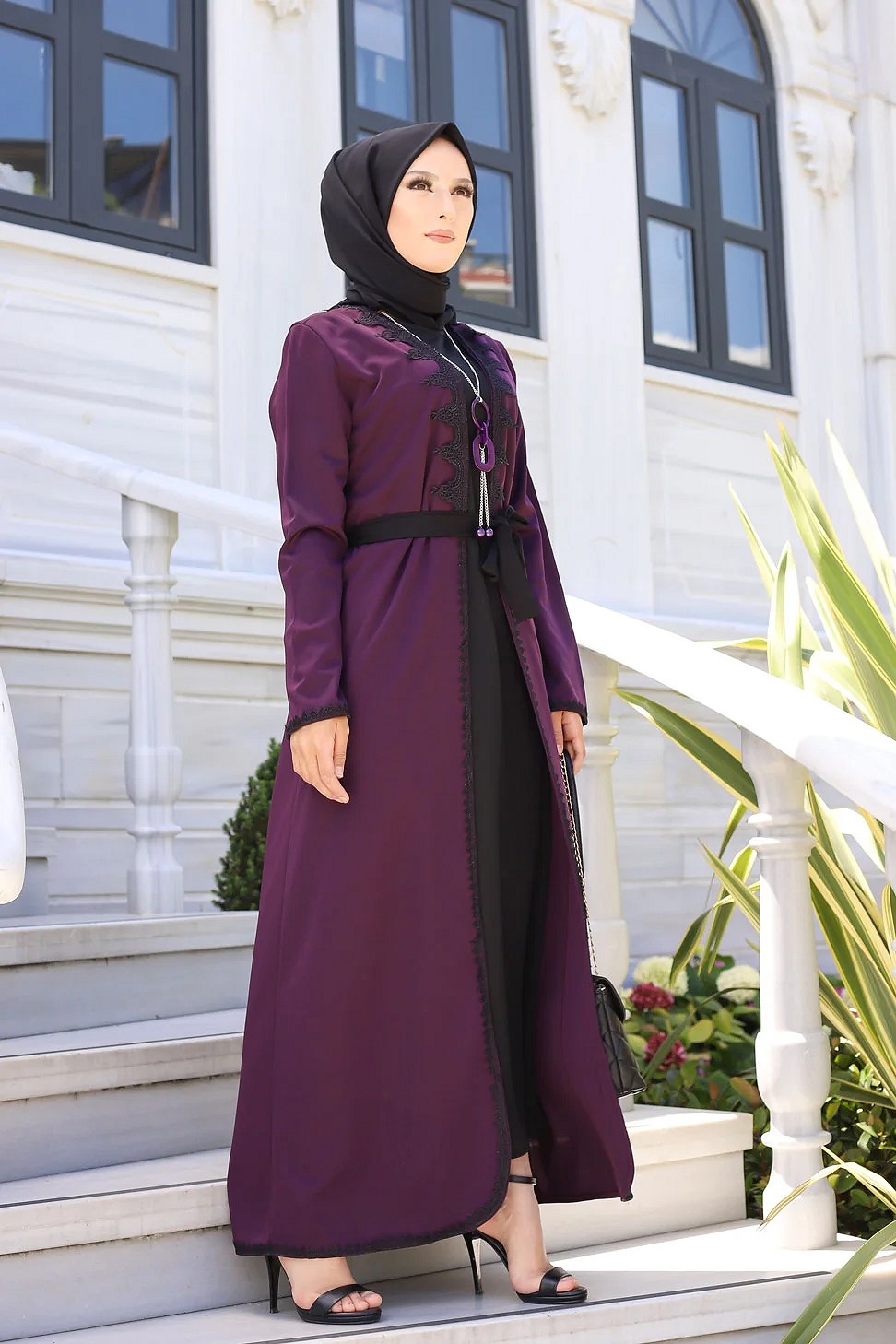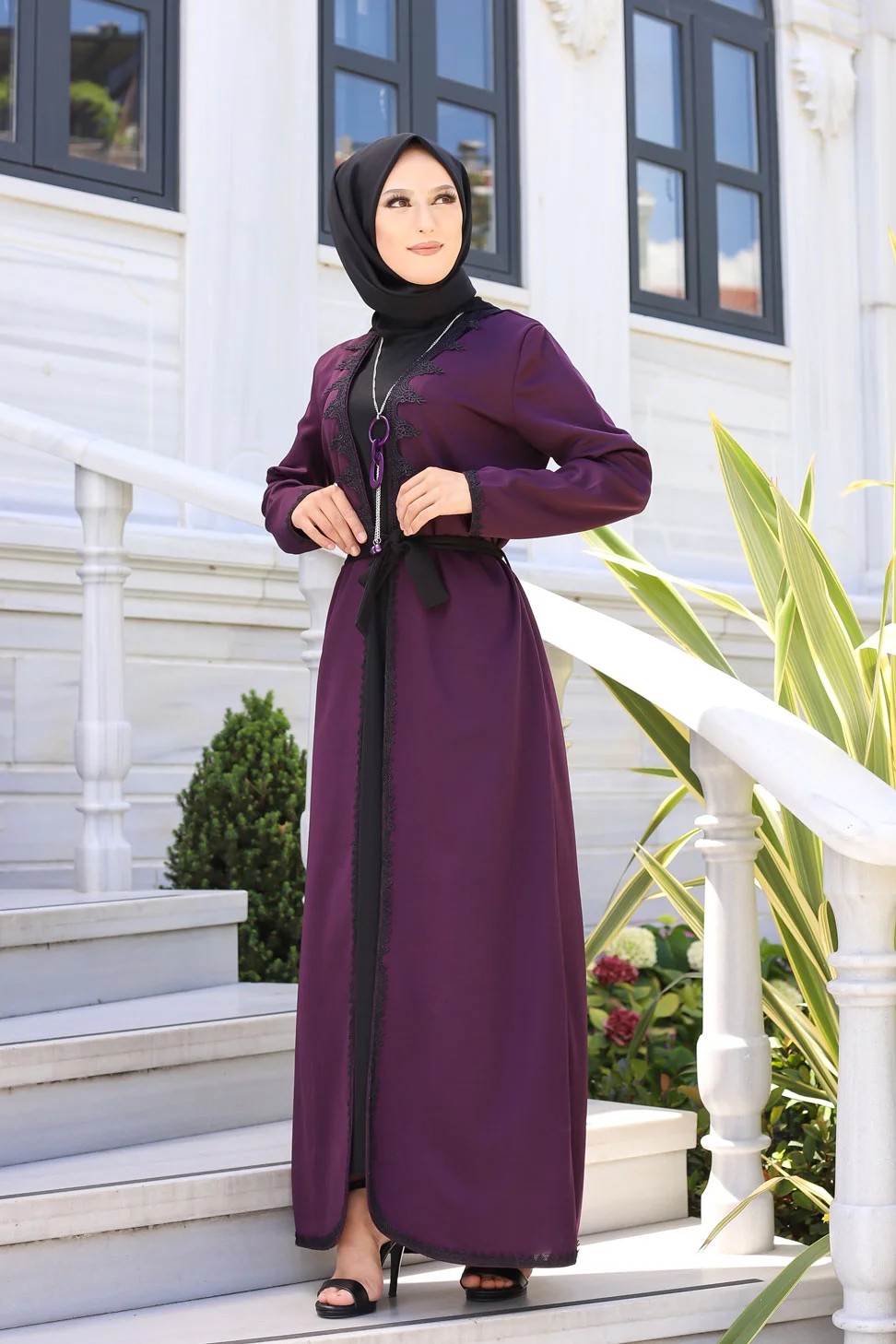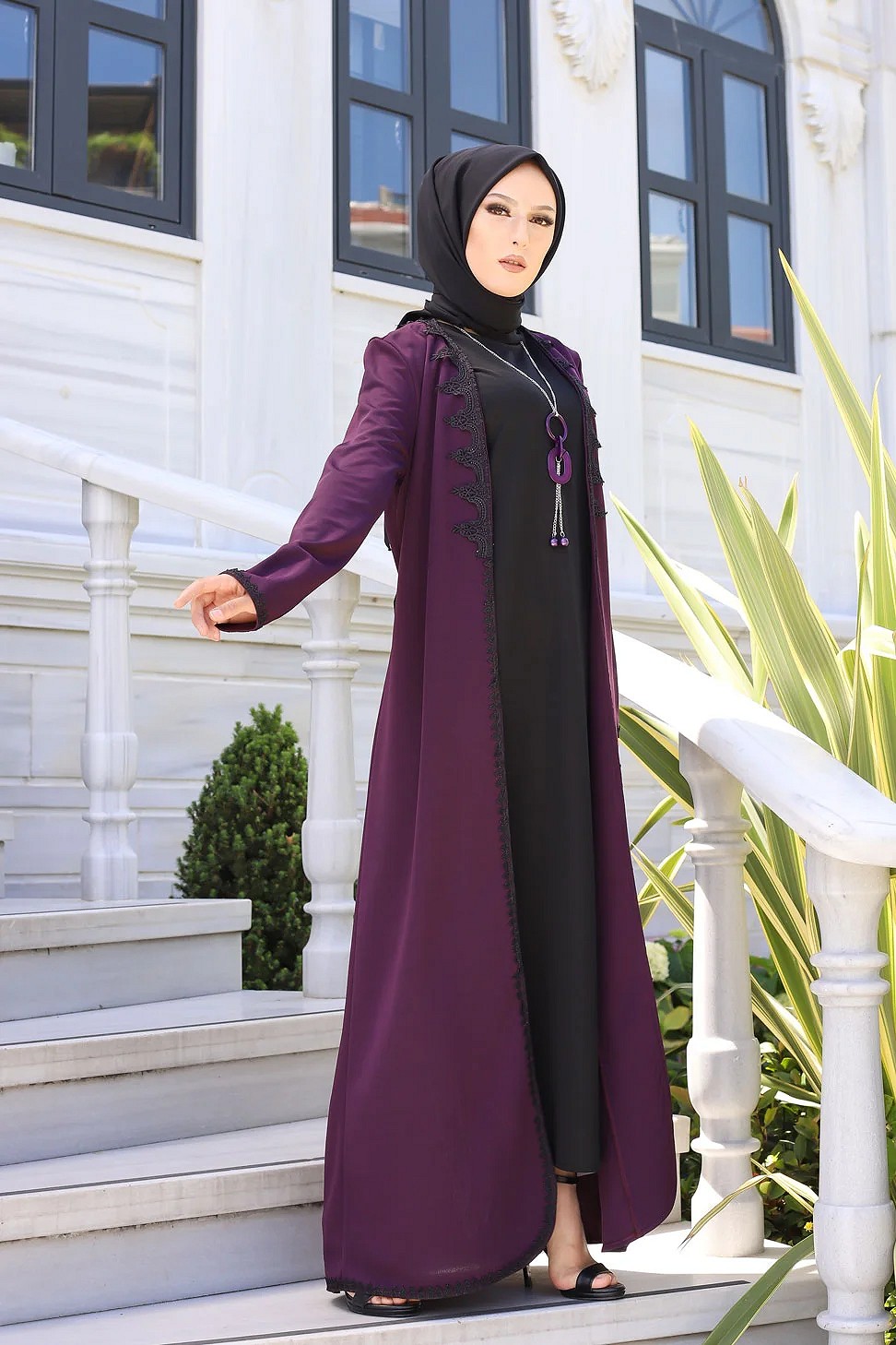 Ensemble Robe et Cardigan (Kimono) - Vetement femme voilée - Couleur violette Vetement & Accessoire