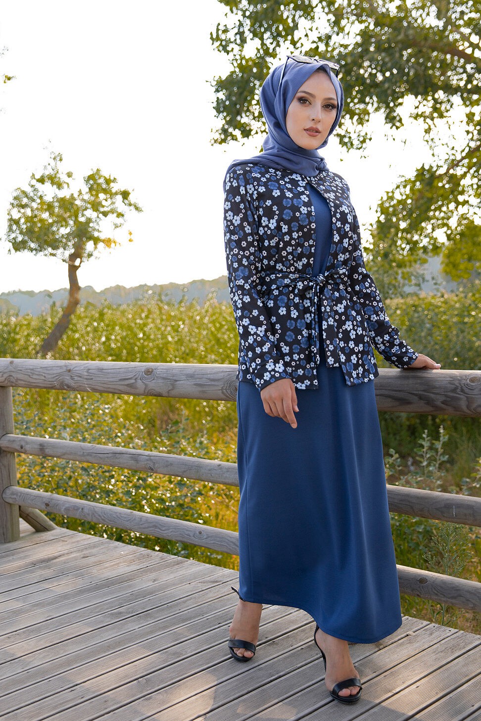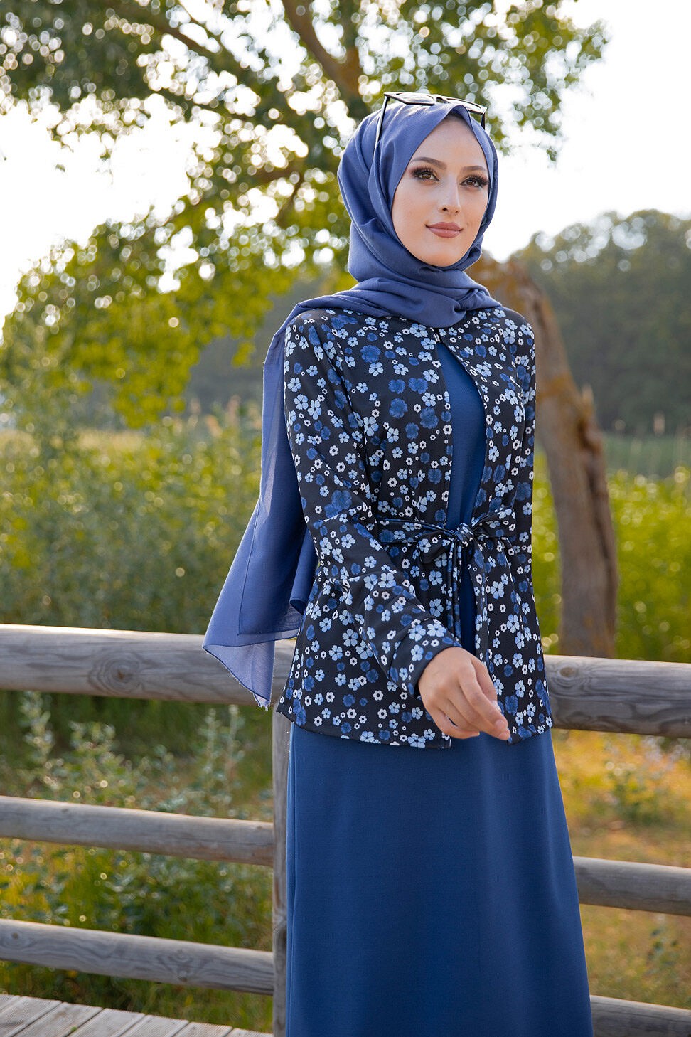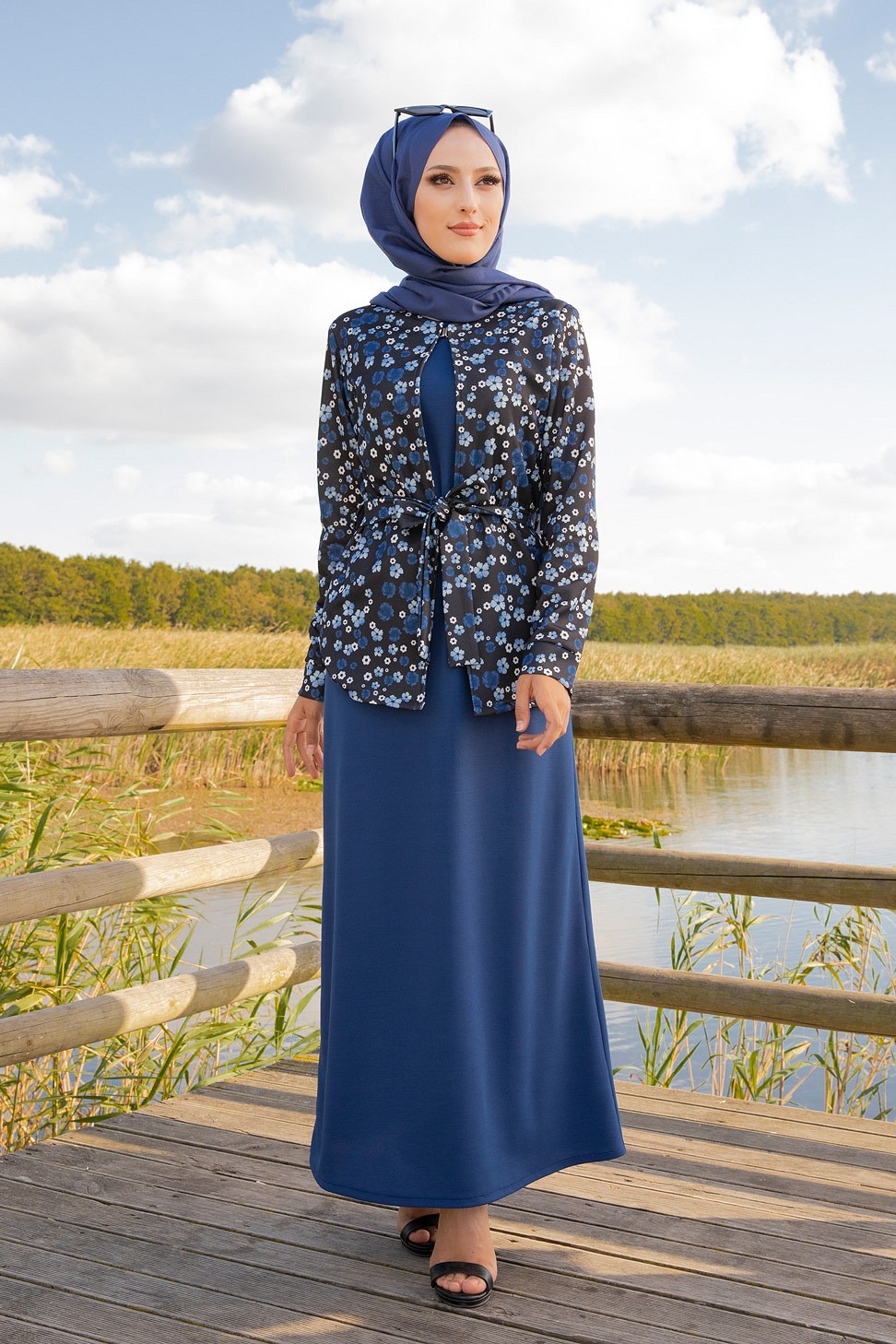 Ensemble Robe et Veste Gilet (Vetement femme voilée et Mode islamique) - Couleur bleu roi Vetement & Accessoire