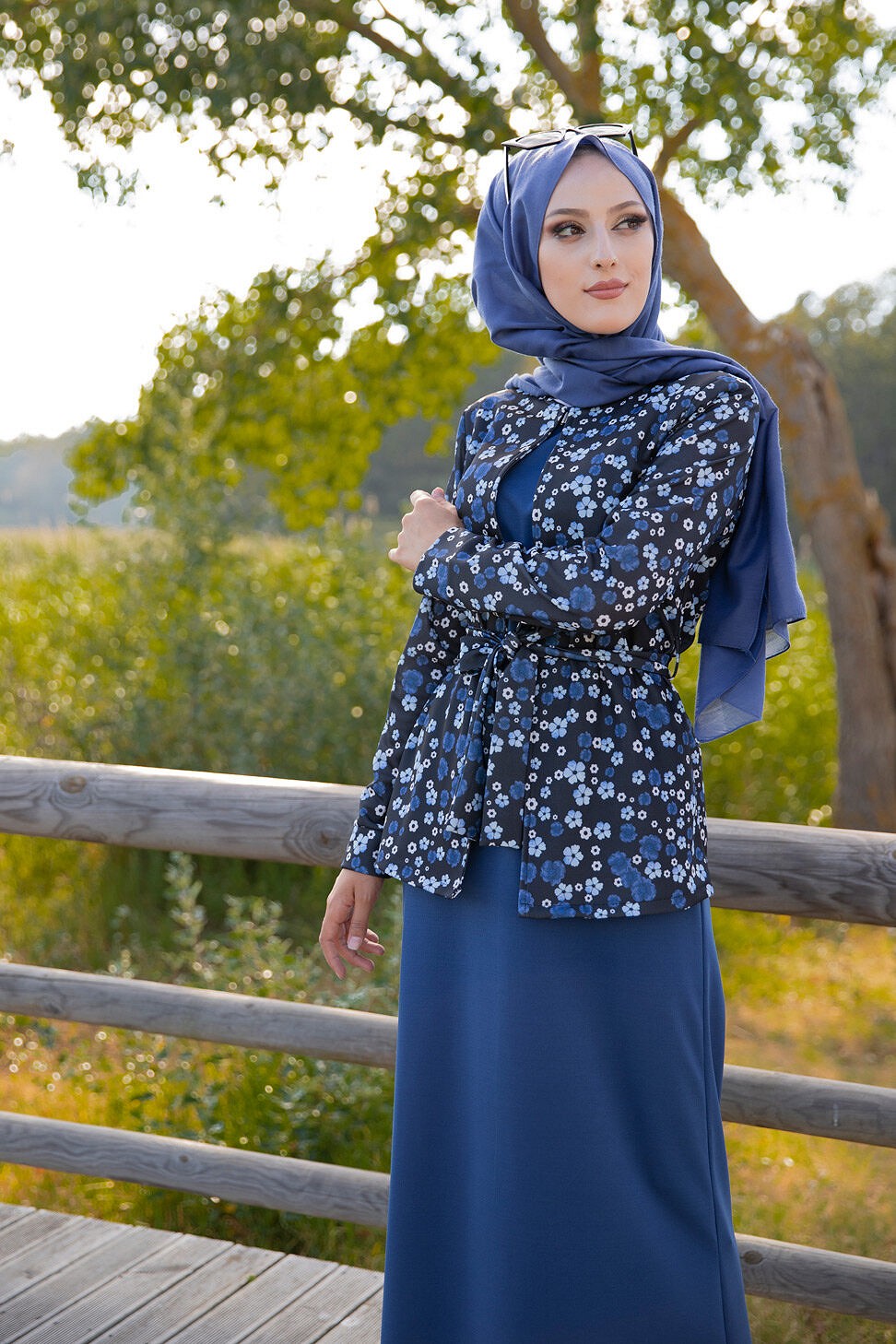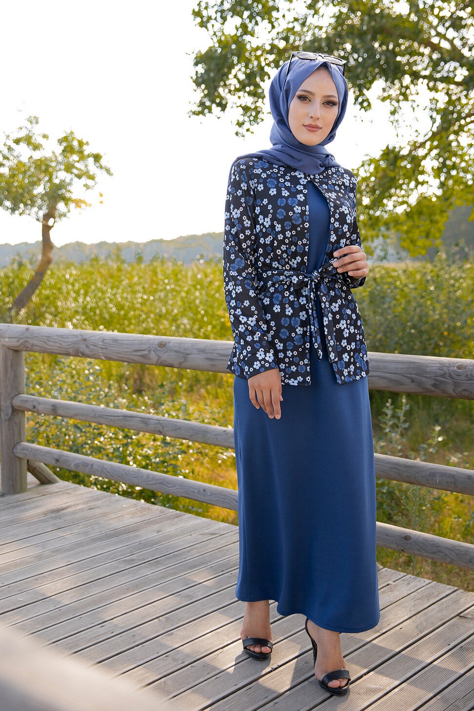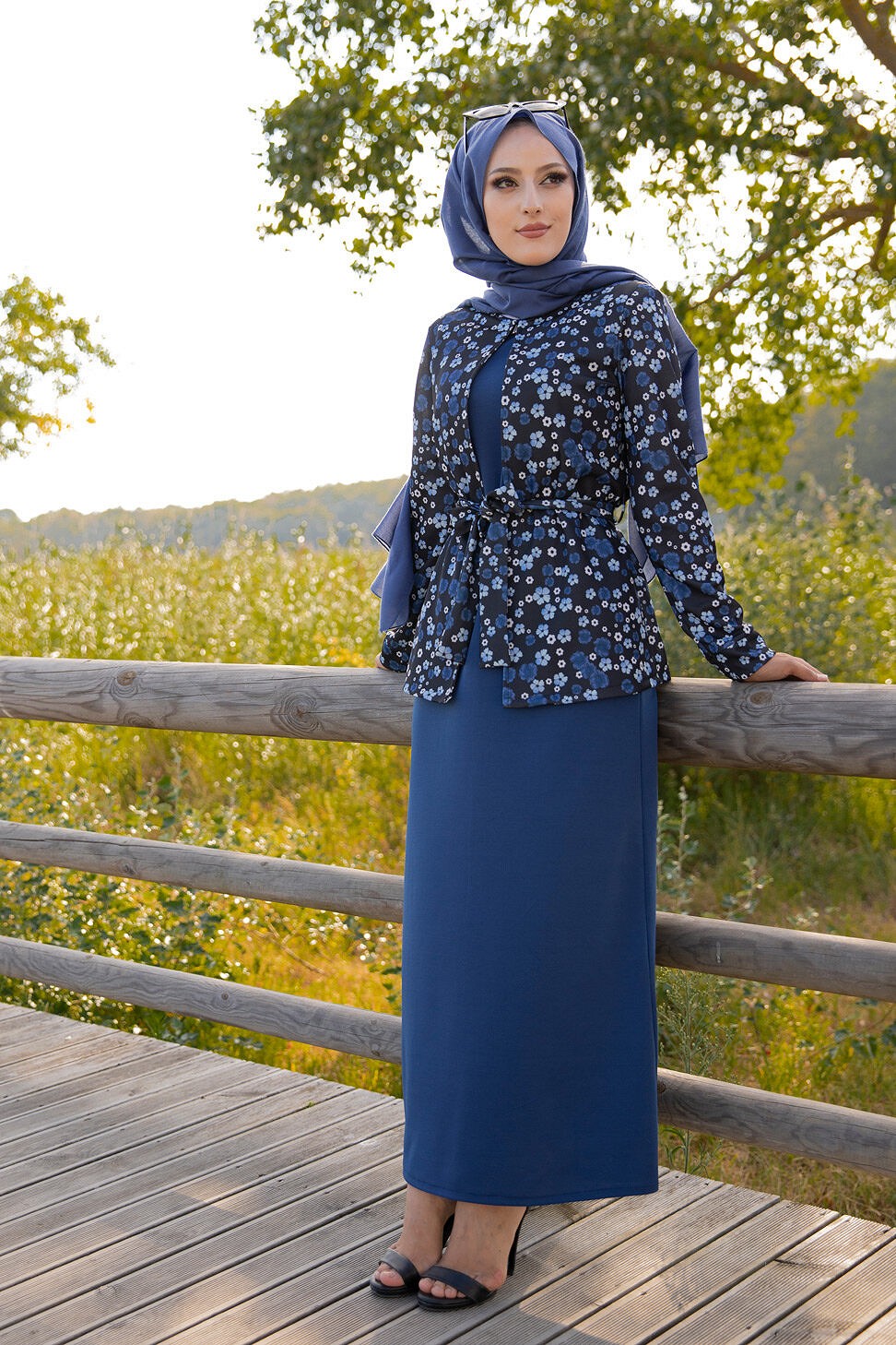 Ensemble Robe et Veste Gilet (Vetement femme voilée et Mode islamique) - Couleur bleu roi Vetement & Accessoire