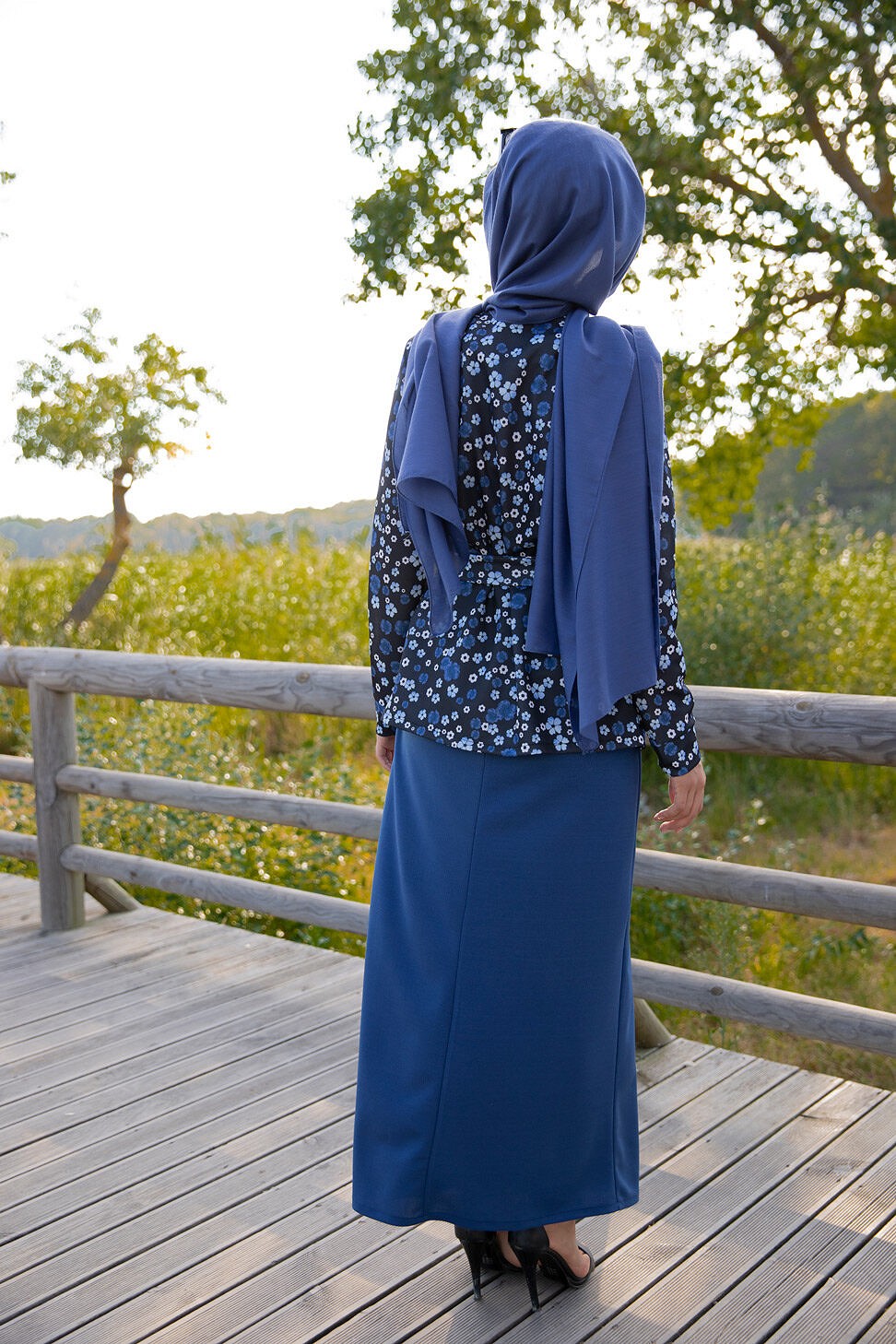 Ensemble habillé deux pièces : tunique évasée et pantalon (Tenue femme pour hijab) - Couleur bleu pétrole - REF. 36203 (38.00 €)