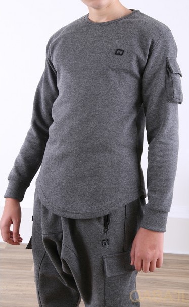 Poches de rappel qui design le modèle sur la manche gauches du sweat shirt.