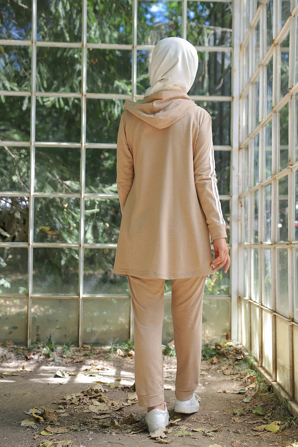 Ensemble bicolore pour femme : Sweat à capuche et pantalon assorti (Tenue décontractée et sport pour hijab) - Couleur beige - REF. 36360 (26.00 €)