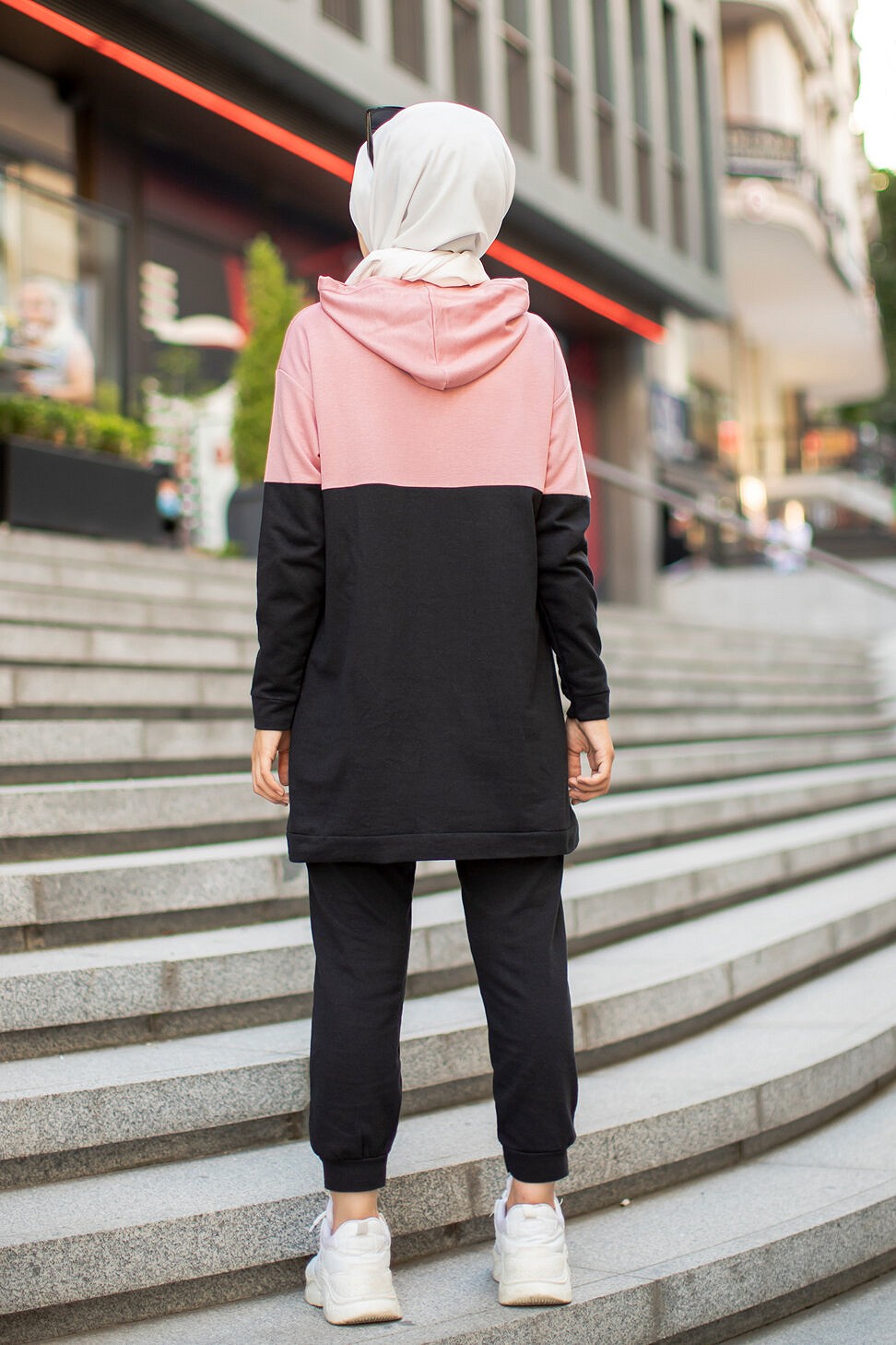 Survêtement original ample (Ensemble Décontracté et Sport pour femme musulmane) - Couleur rose poudré, noir et blanc - REF. 36647 (29.90 €)