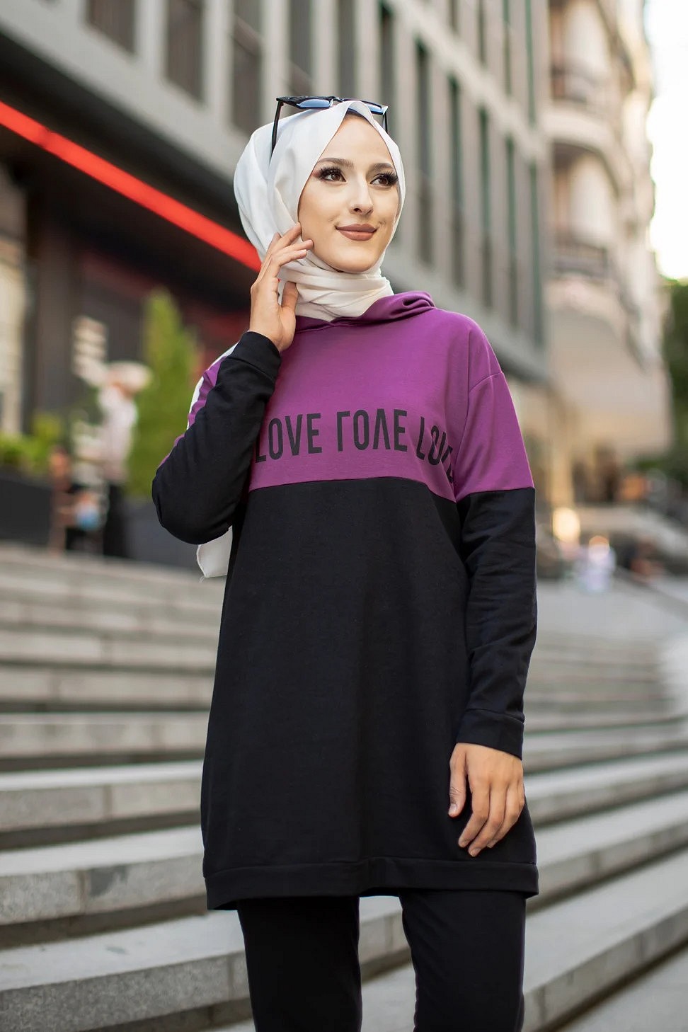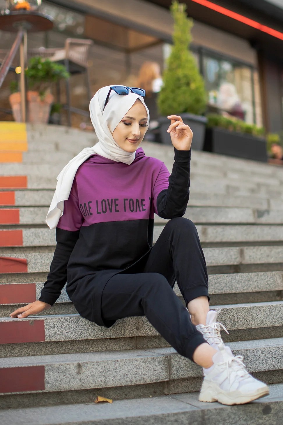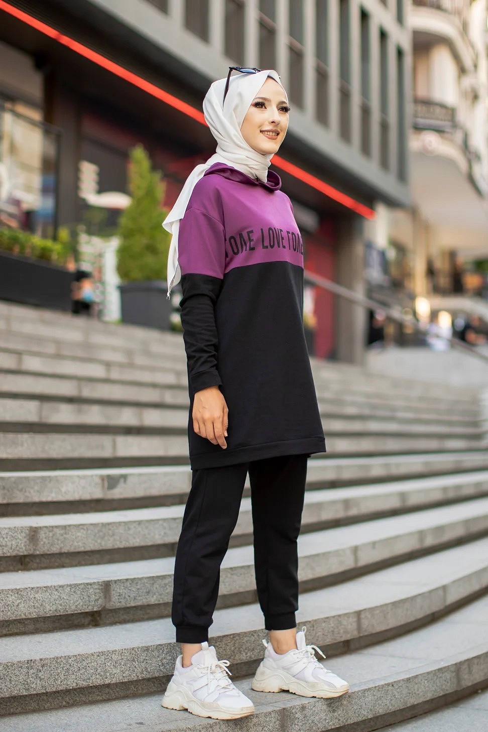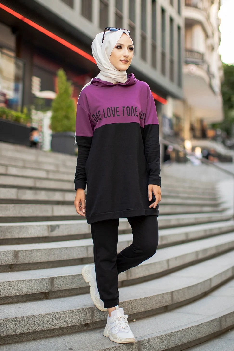 Ensemble Survêtement bi-couleur à capuche pour femme voilée (Hijab Sport Ootd - Boutique en ligne) - Couleur Mauve Vetement & Accessoire