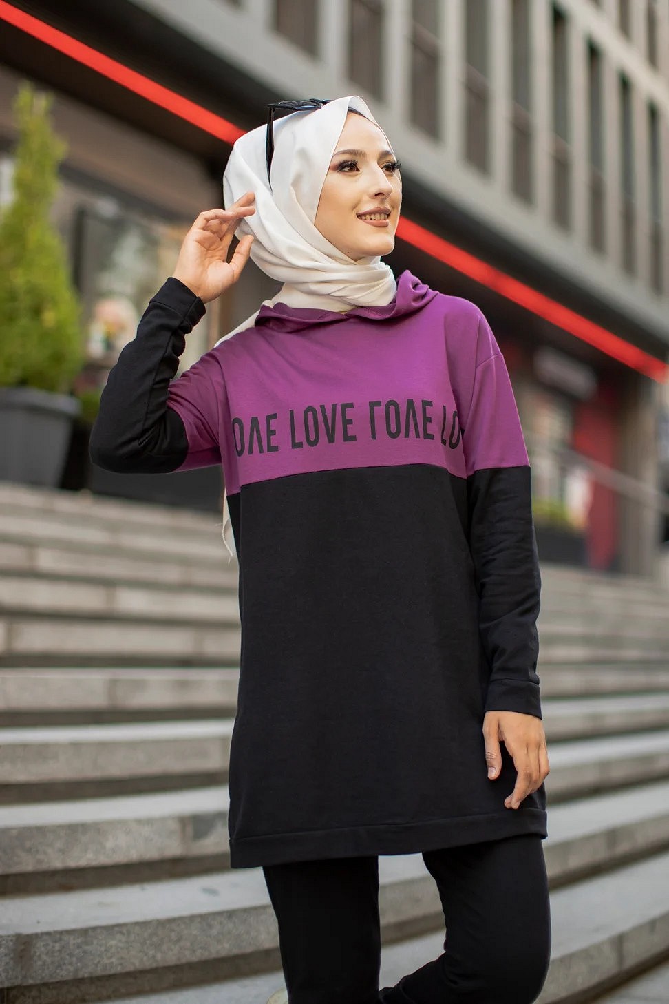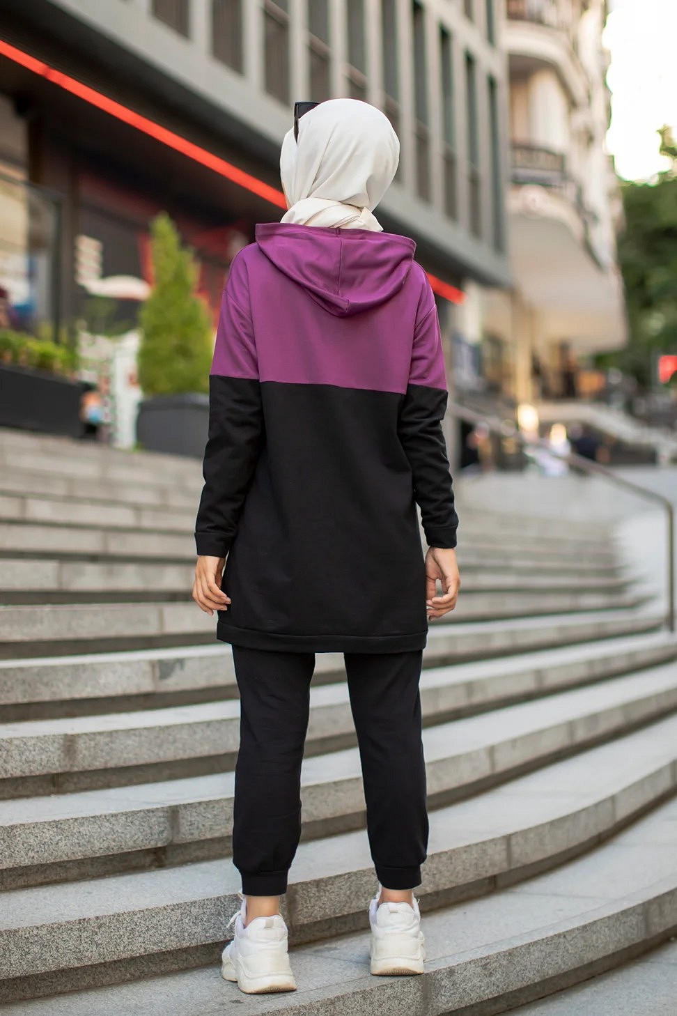 Ensemble Survetement bi-couleur a capuche pour femme voilee (Hijab Sport Ootd - Boutique en ligne) - Couleur Mauve