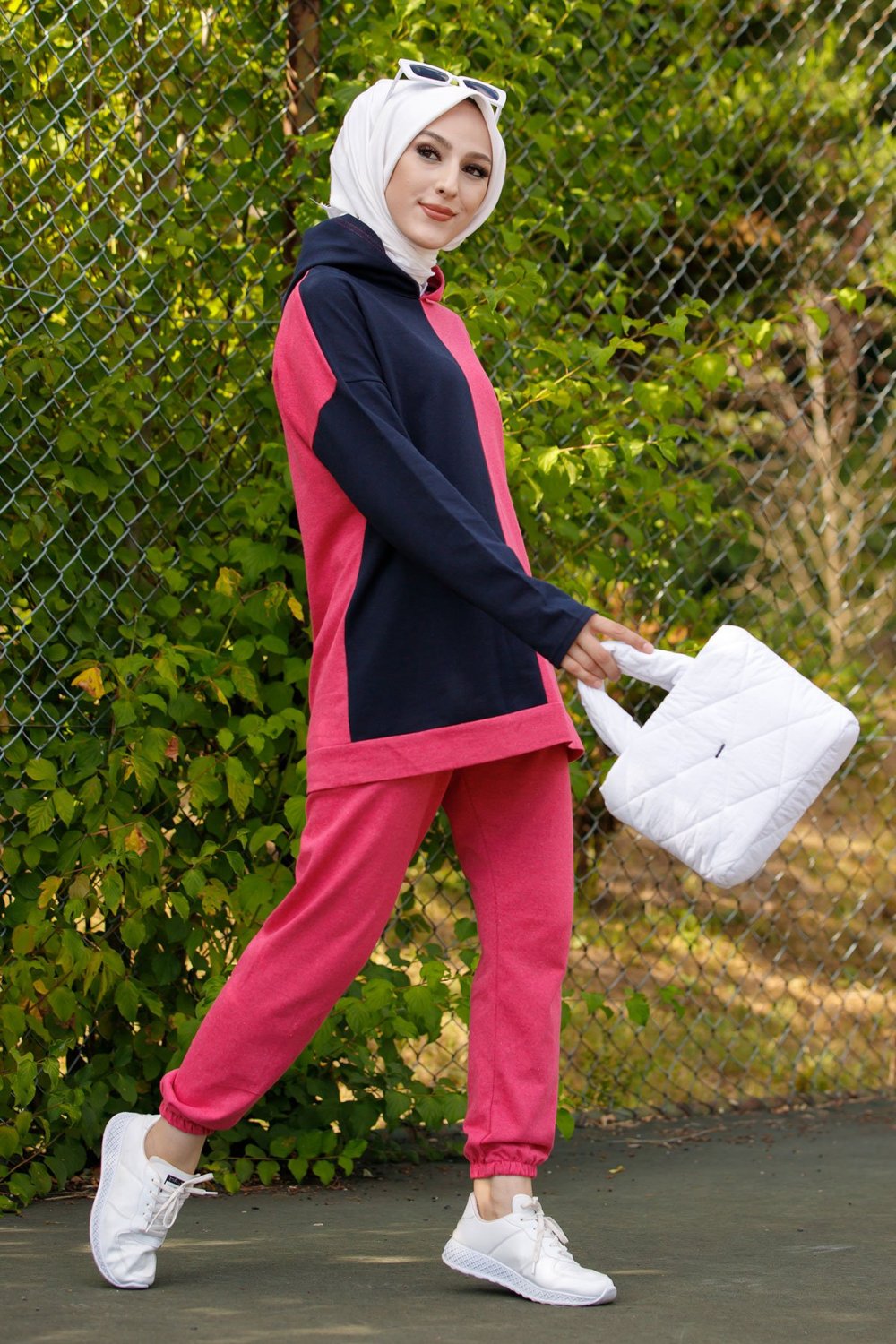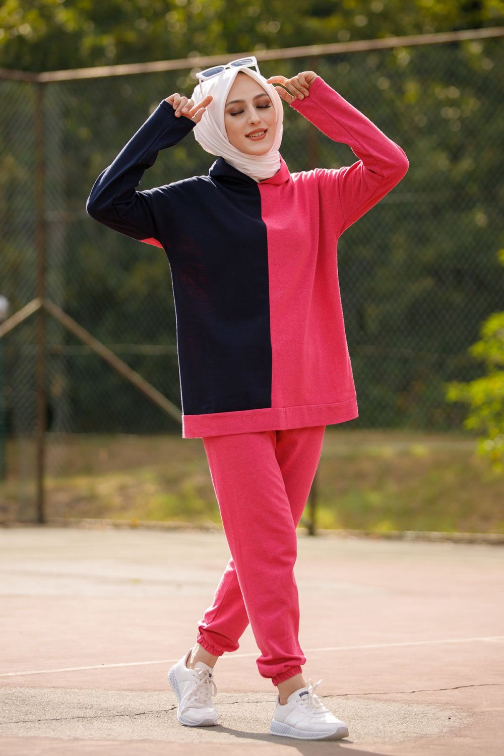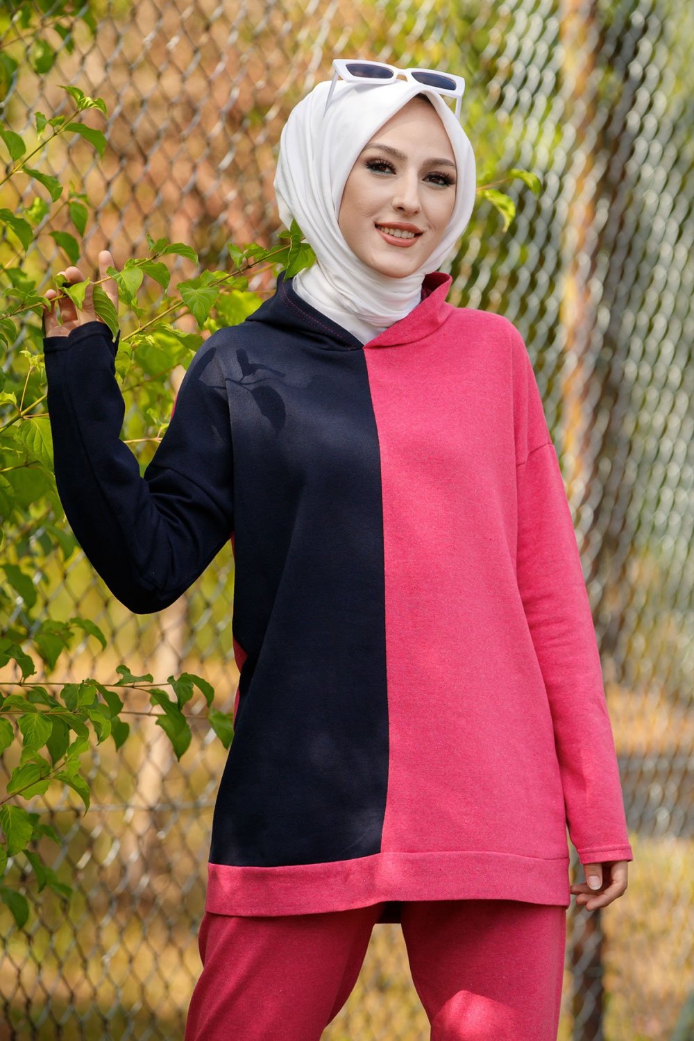 Ensemble Survêtement femme deux pièces (Sweat-Tunique et pantalon) - Couleur bleu marine et fuchsia Vetement & Accessoire