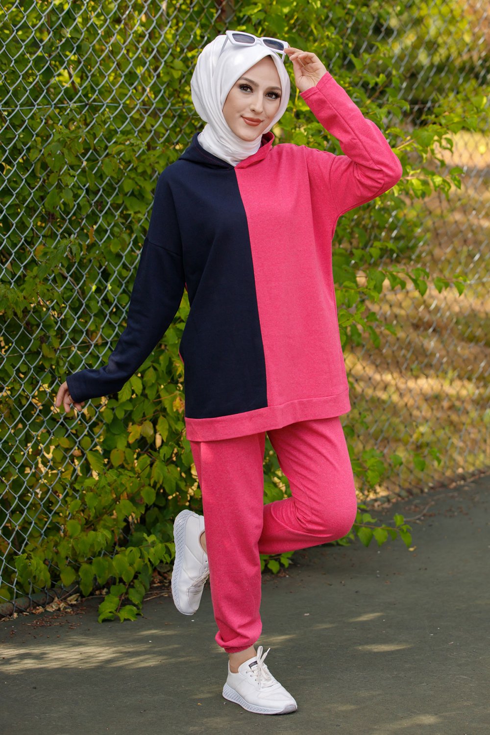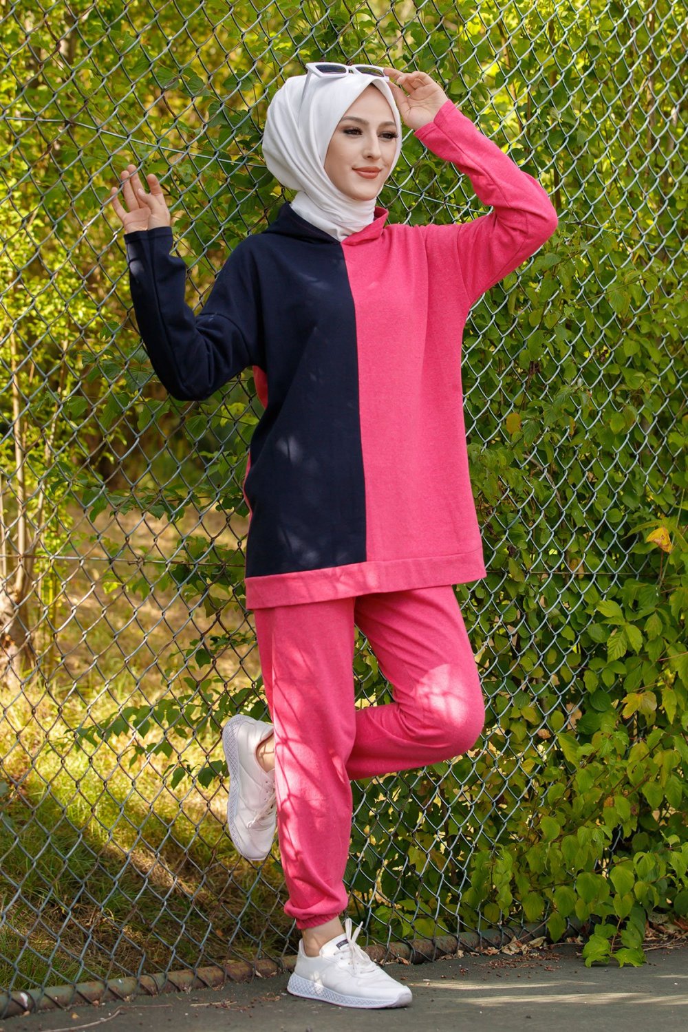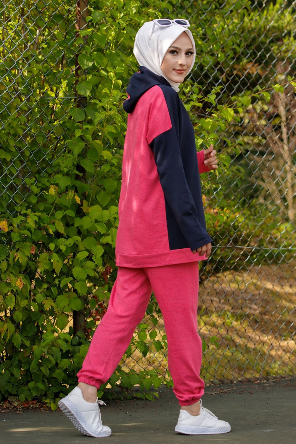 Ensemble Survêtement femme deux pièces (Sweat-Tunique et pantalon) - Couleur bleu marine et fuchsia Vetement & Accessoire