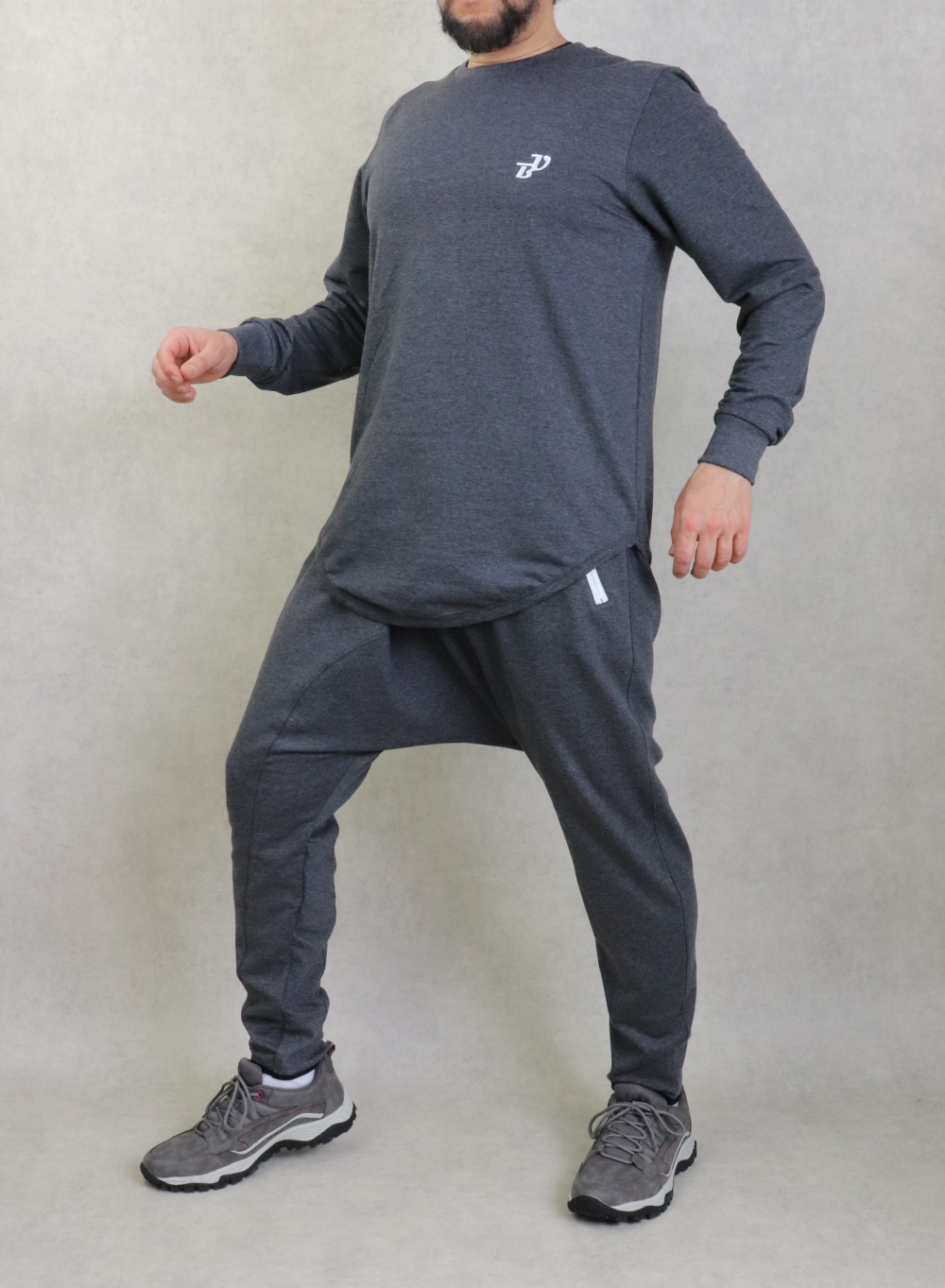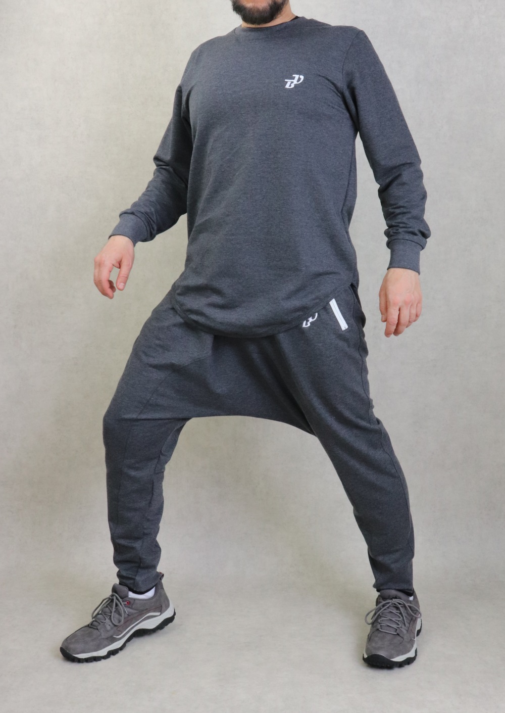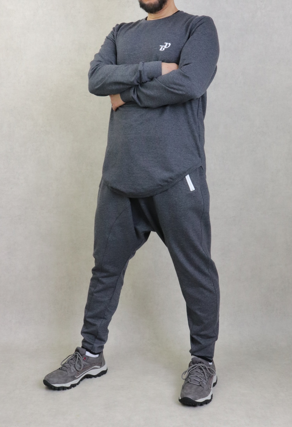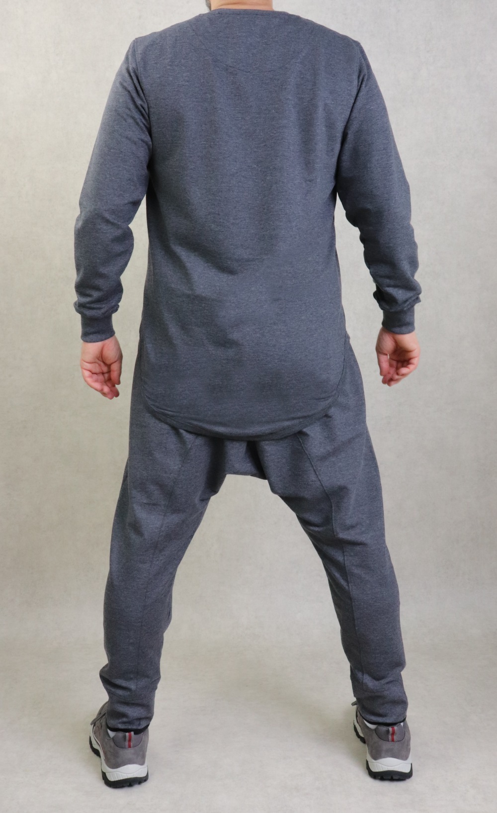 Ensemble Sweat longline et son Pantalon Seroual Jogging léger homme - Marque Best Ummah - Couleur Gris foncé chiné Vetement & Accessoire