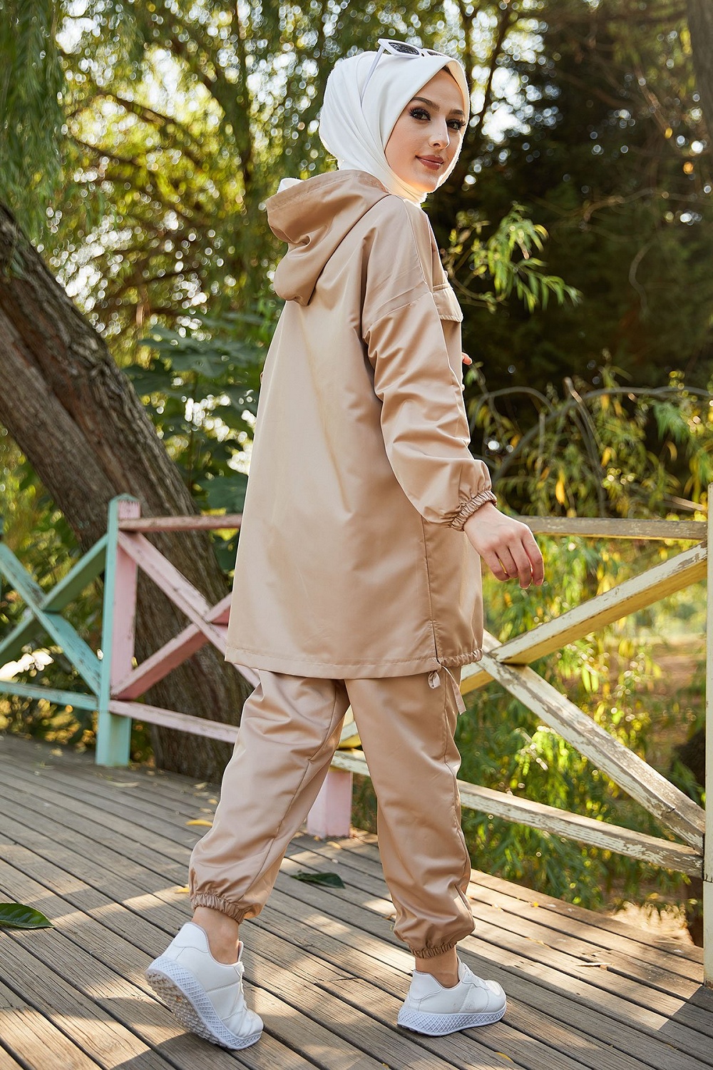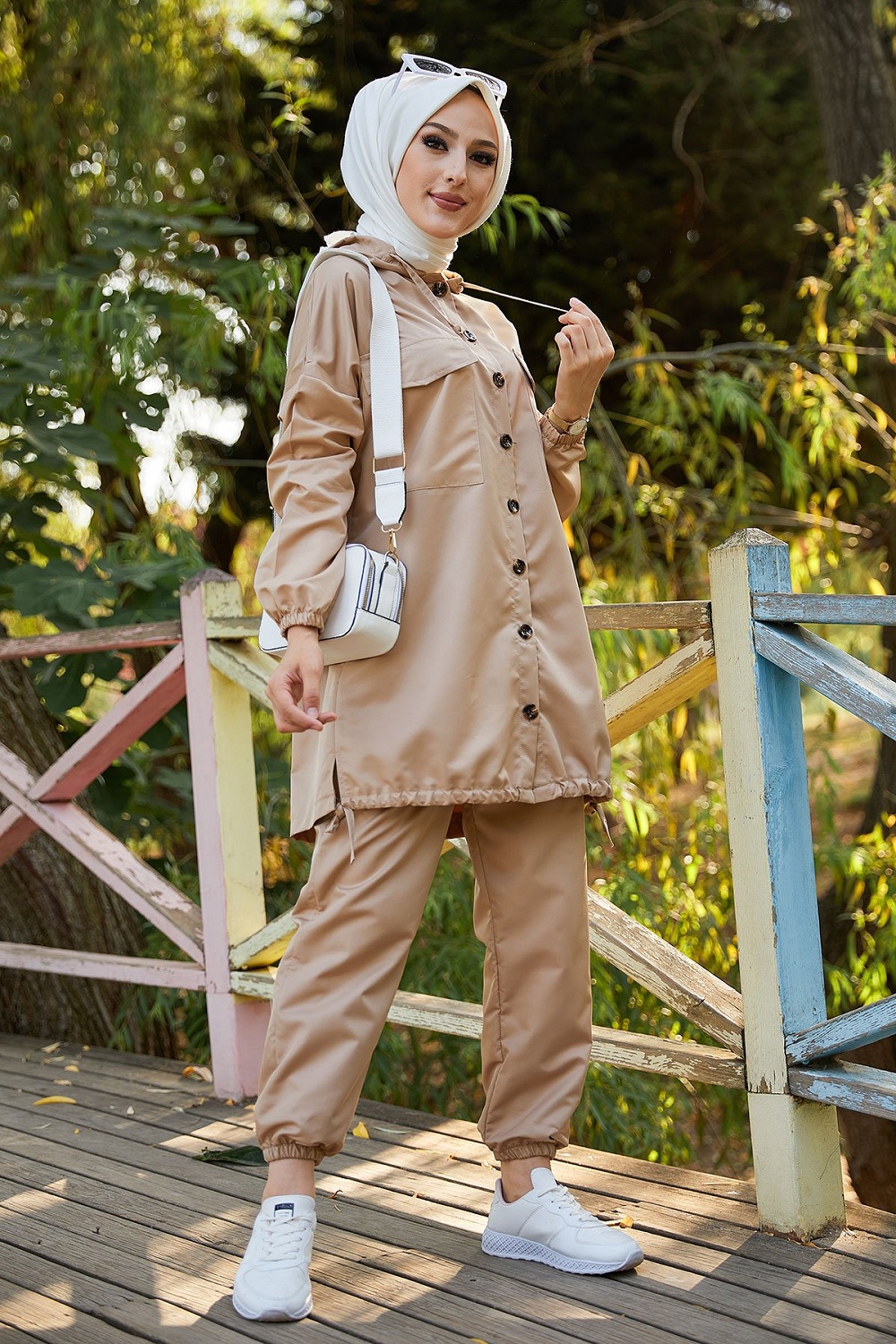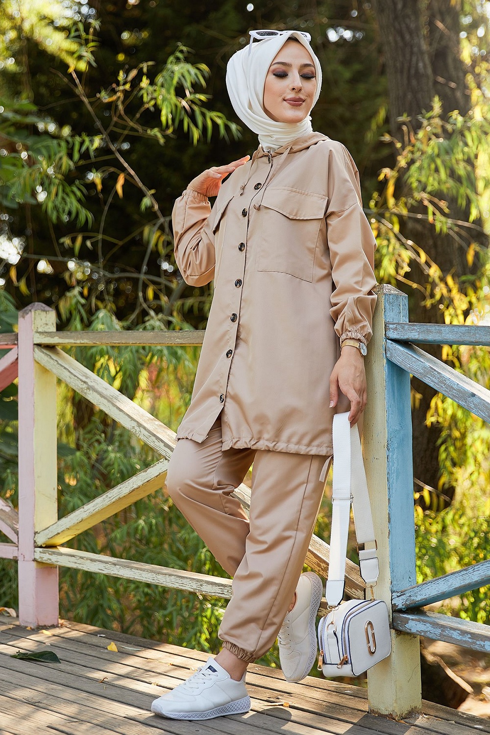 Ensemble casual femme veste et pantalon (Vetement Hijab) - Couleur beige