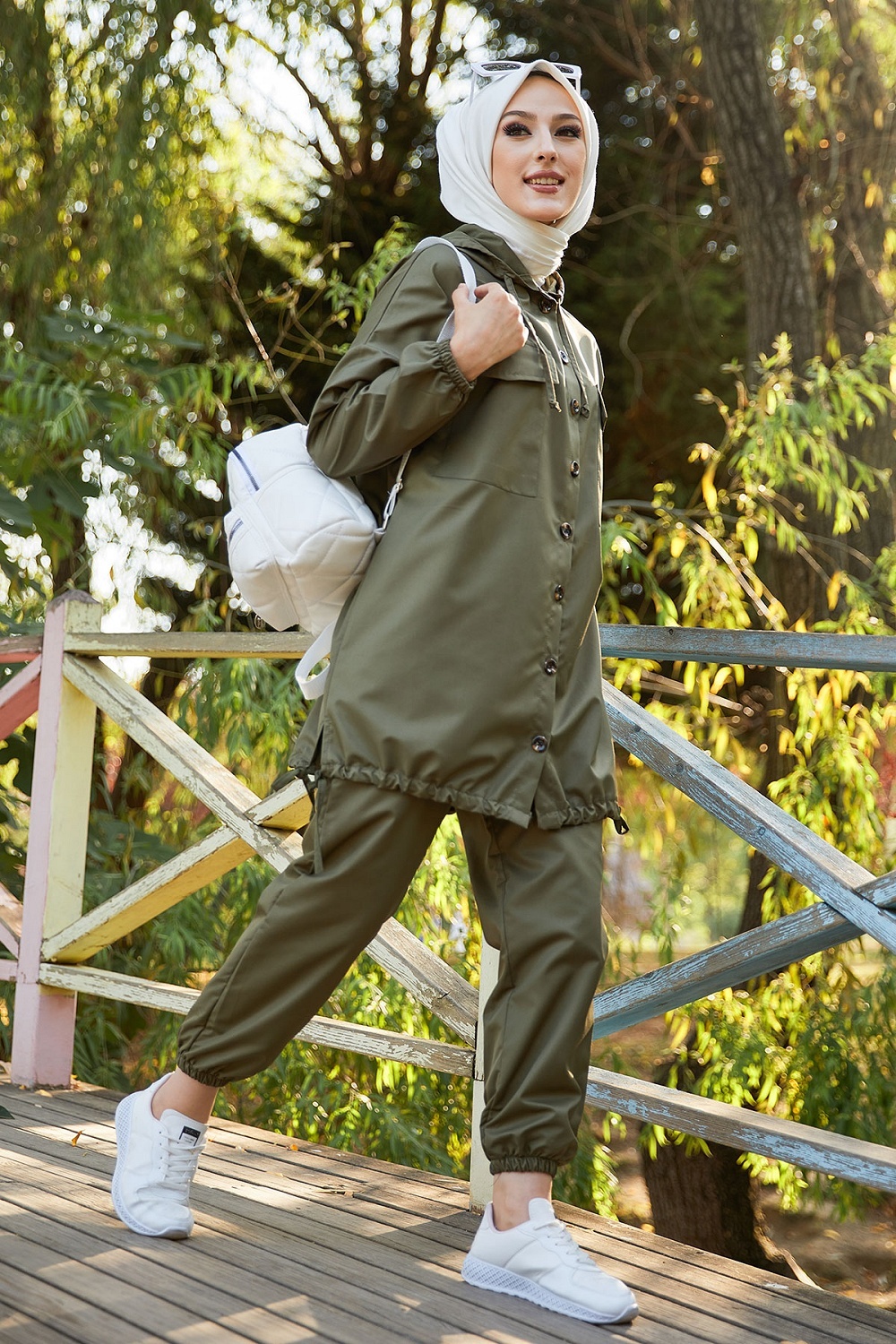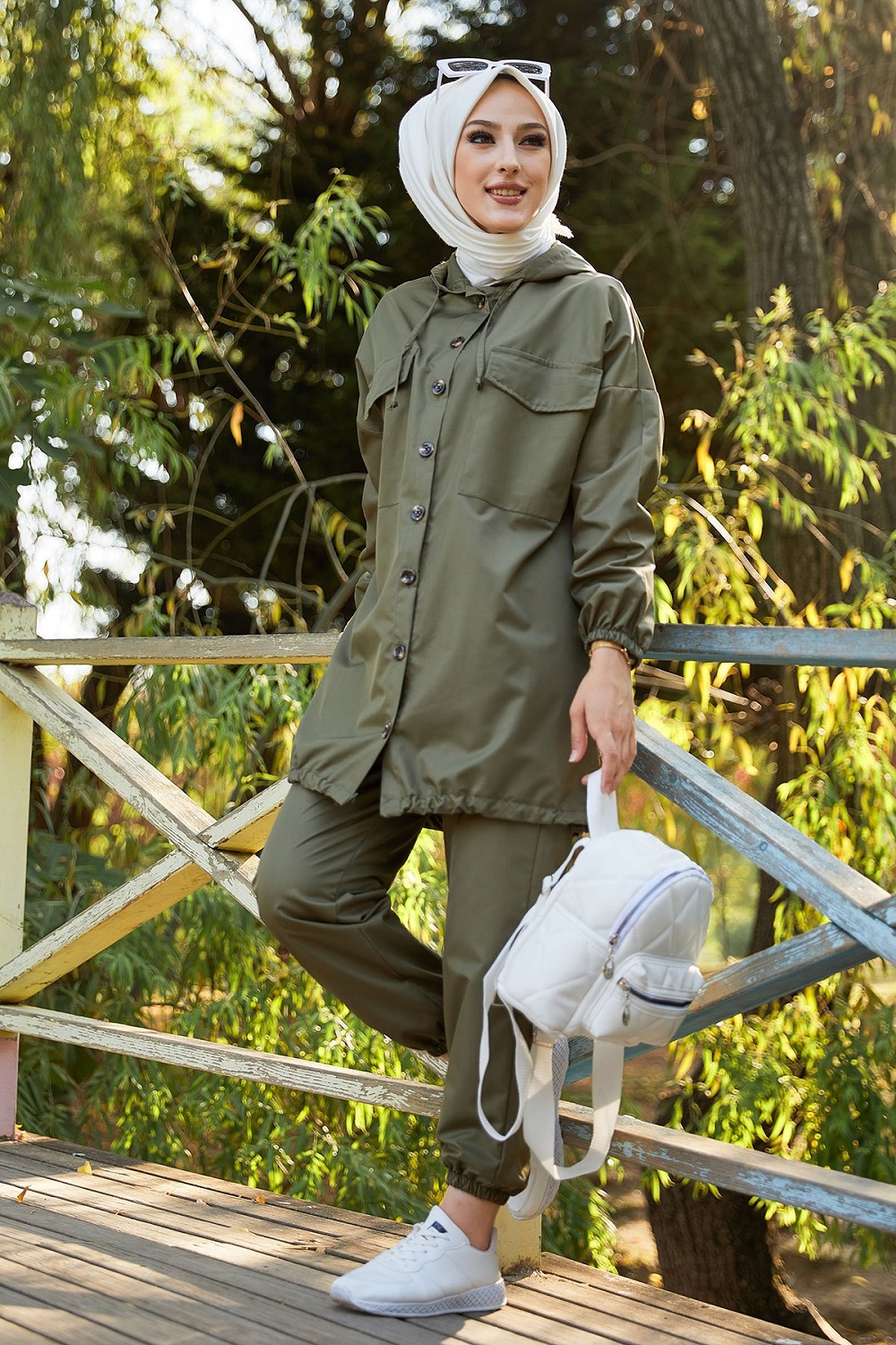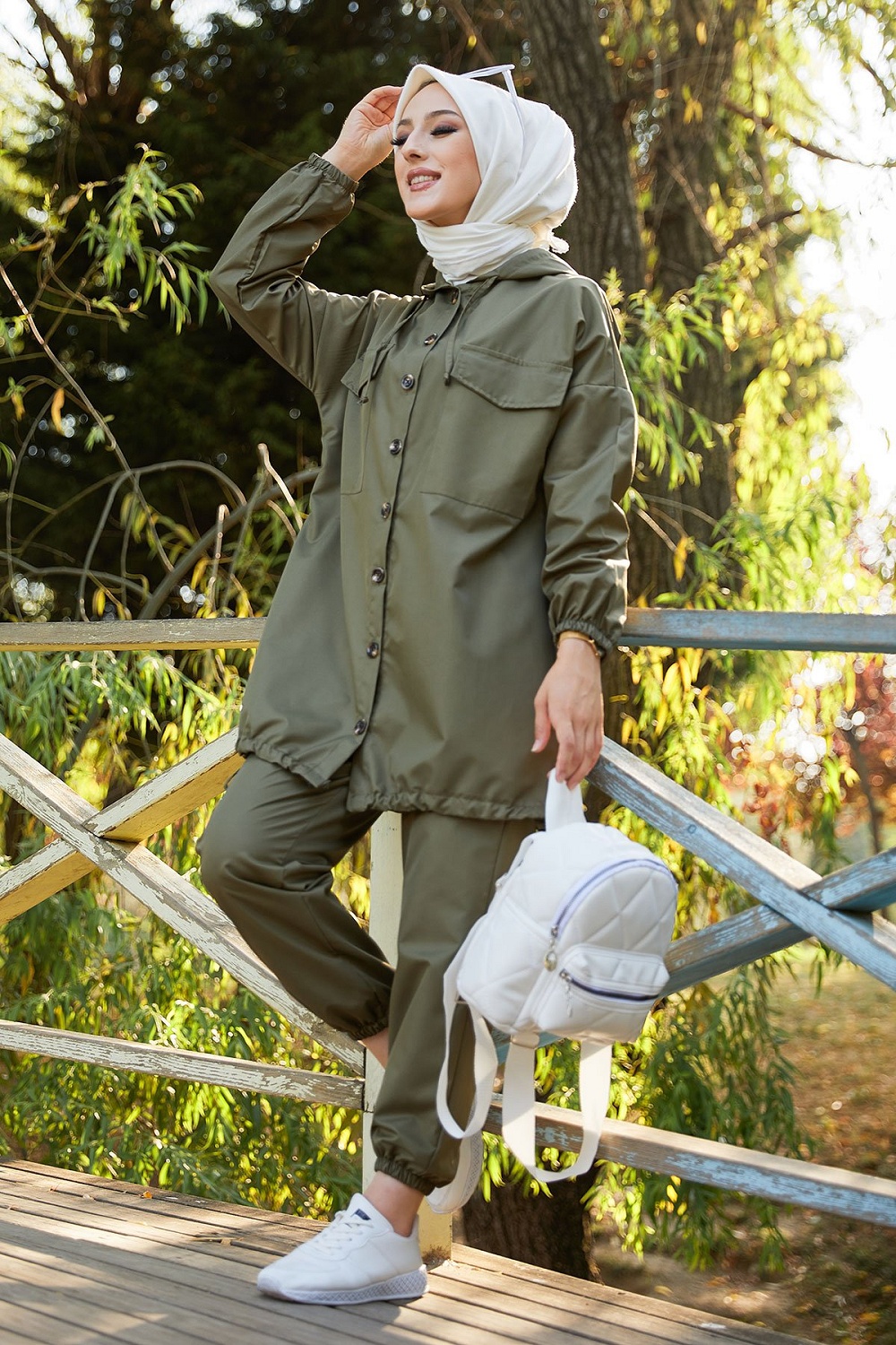Ensemble casual femme veste et pantalon (Vêtement Hijeb) - Couleur kaki Vetement & Accessoire