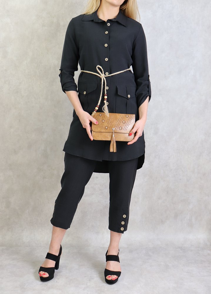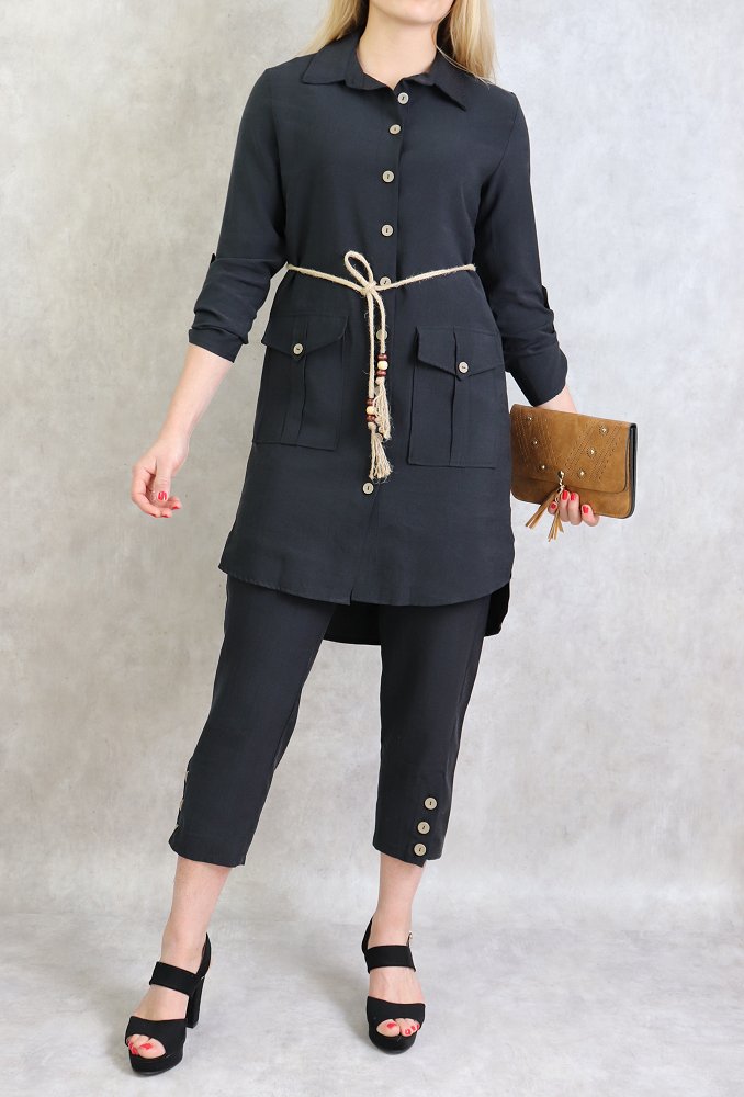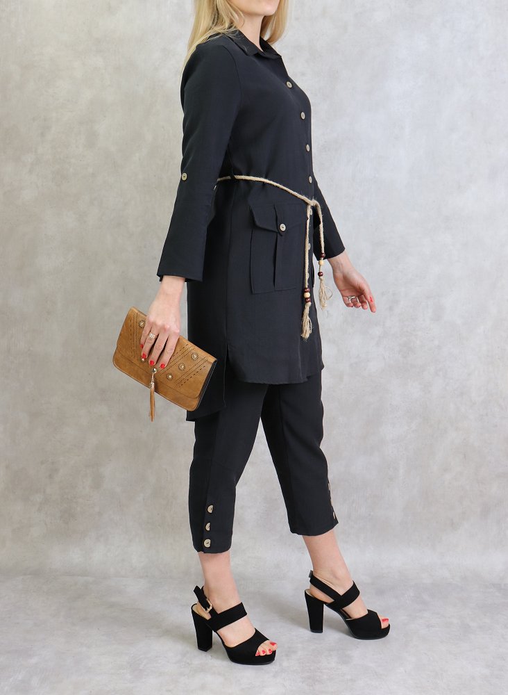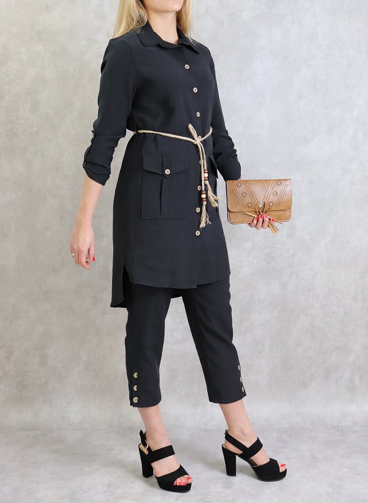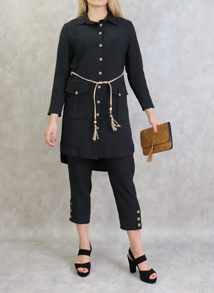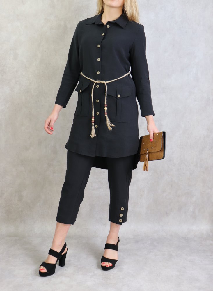 Ensemble casual pour femme : deux pièces tunique mi-longue et pantalon - Couleur noir - REF. 37811 (38.00 €)