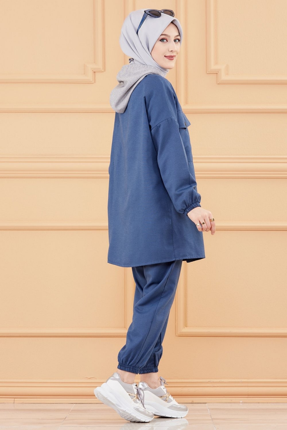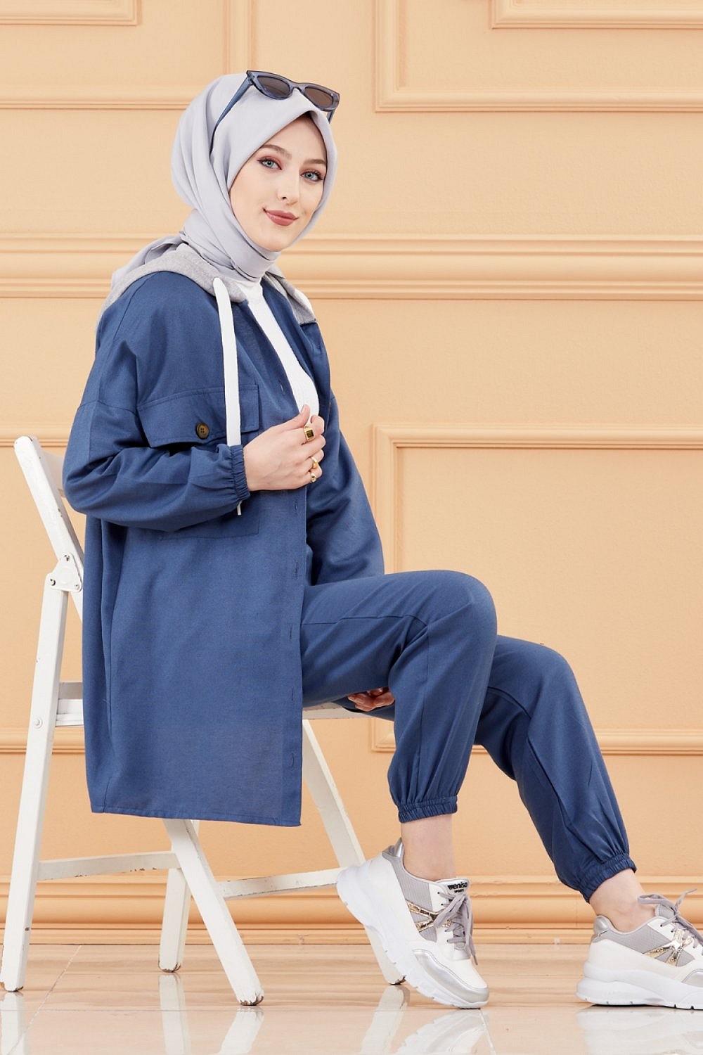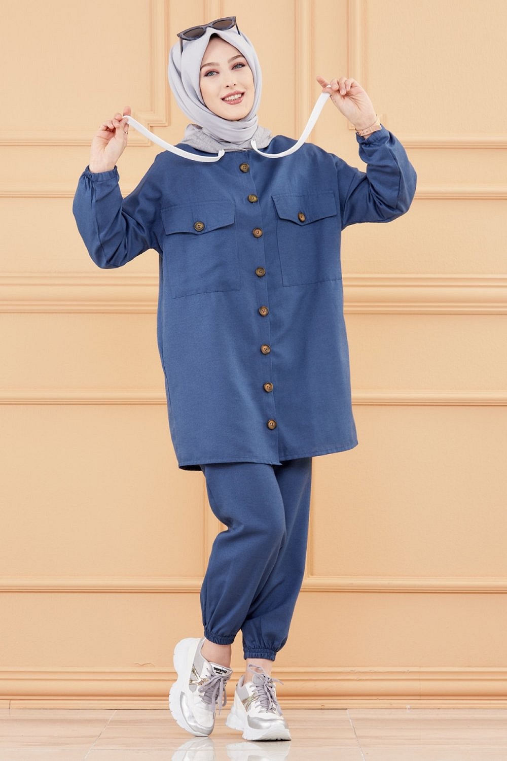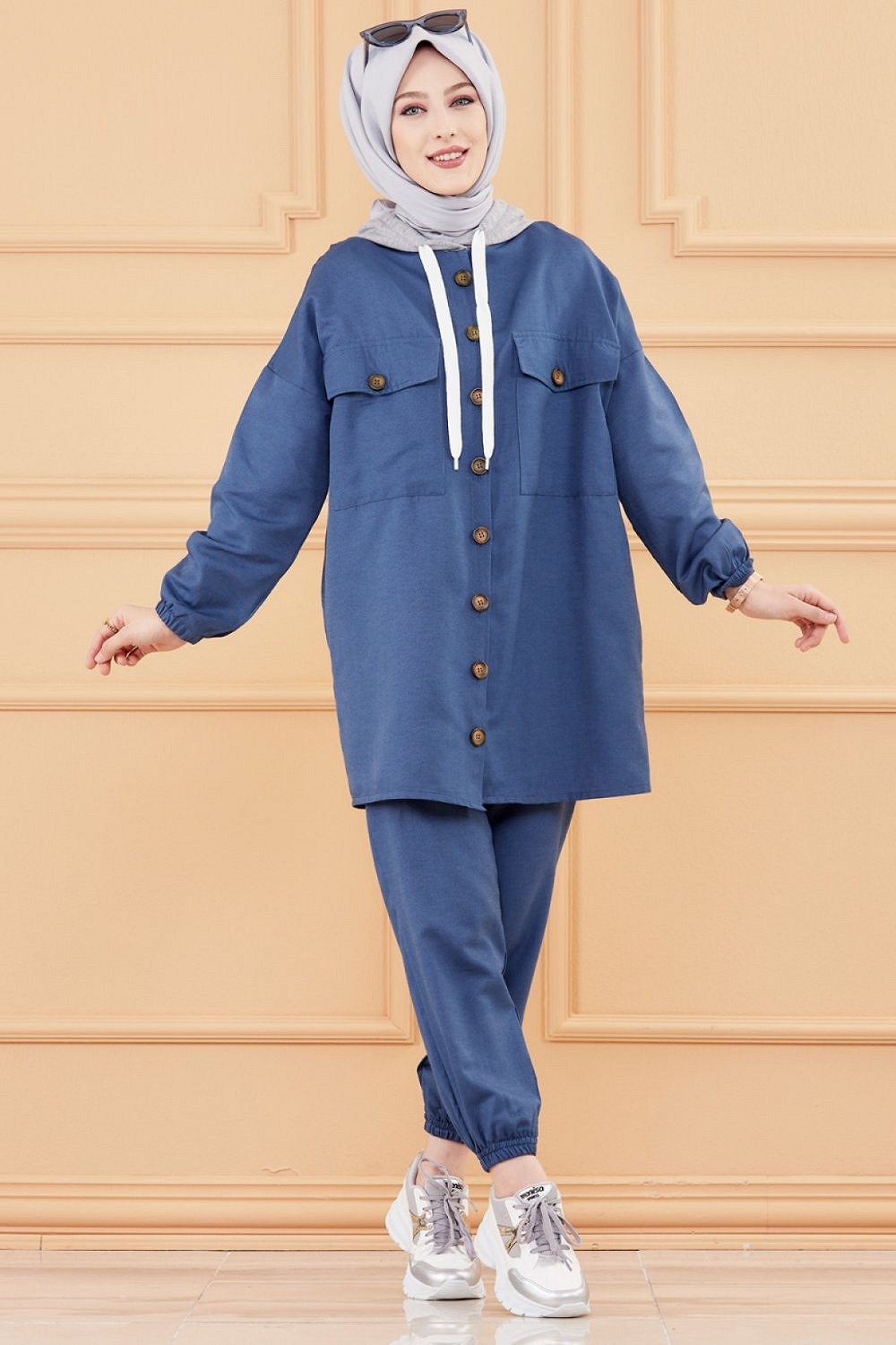 Ensemble casual veste ample et pantalon pour femme (Modest Fashion 2025) - Couleur bleu indigo Vetement & Accessoire