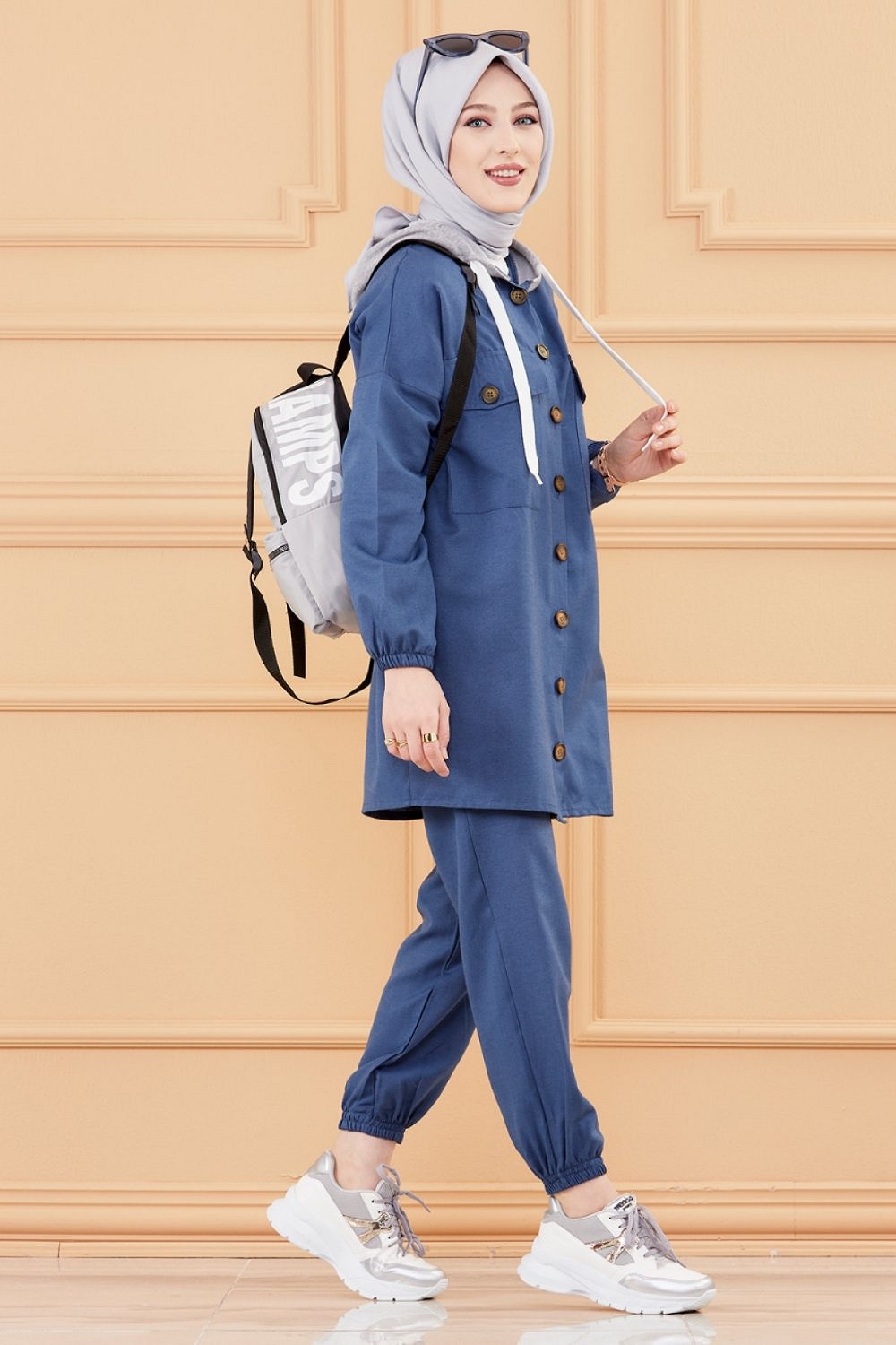 Ensemble survêtement 2 pièces décontracté (Hijab Sport femme musulmane) - Couleur bleu marine - REF. 32290 (29.90 €)
