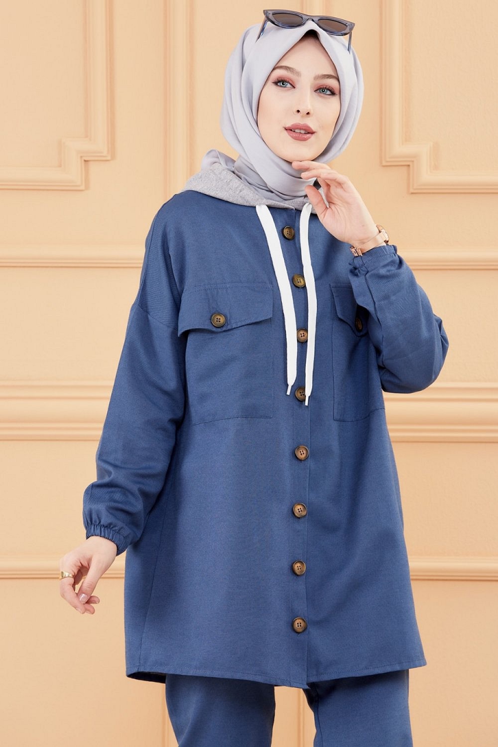 Tunique-Chemise ample boutonnée (Vetement décontracté femme voilée) - Couleur bleu - REF. 33198 (19.90 €)