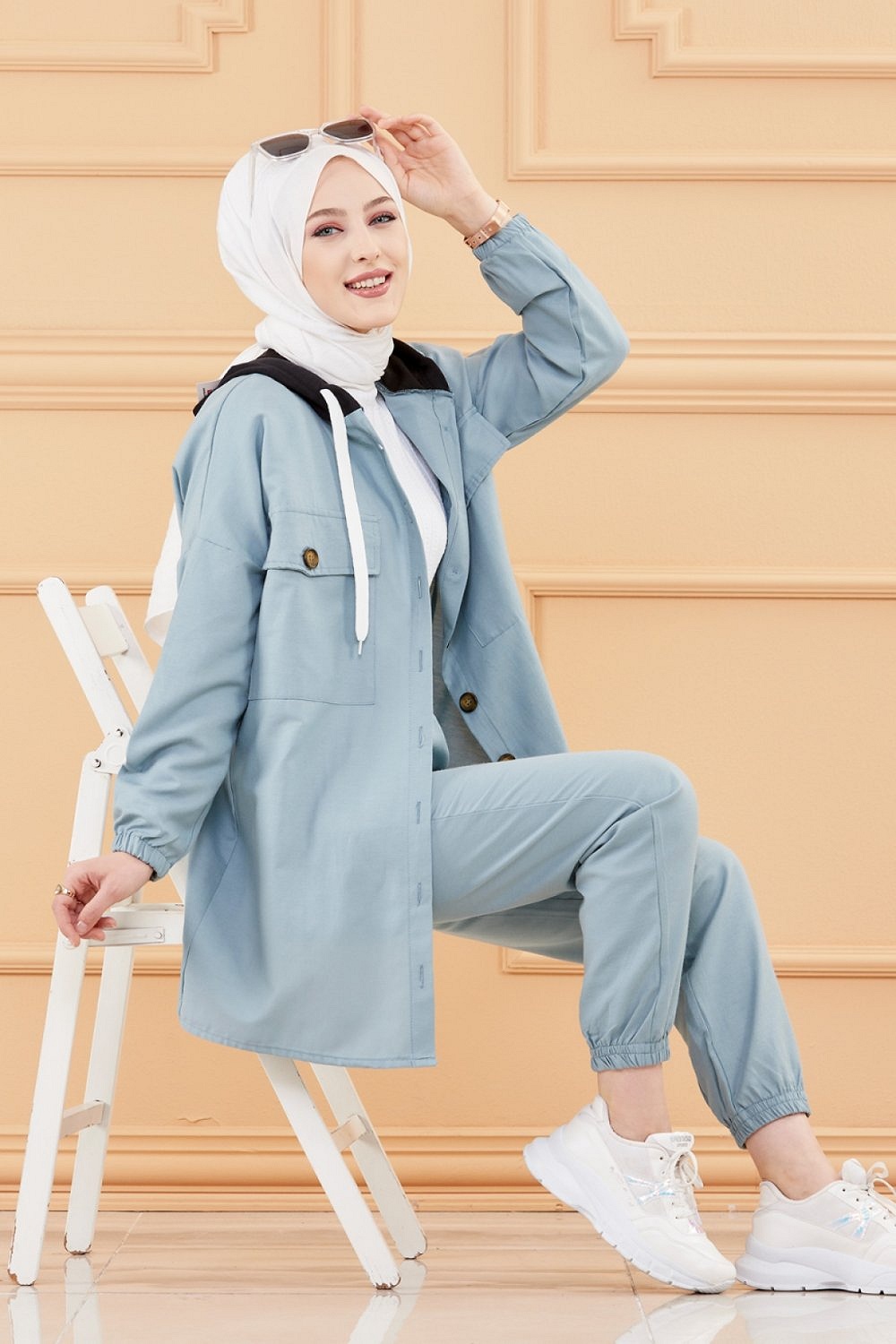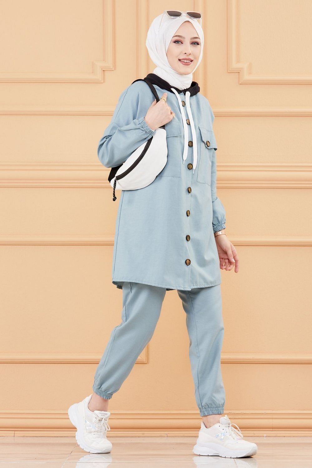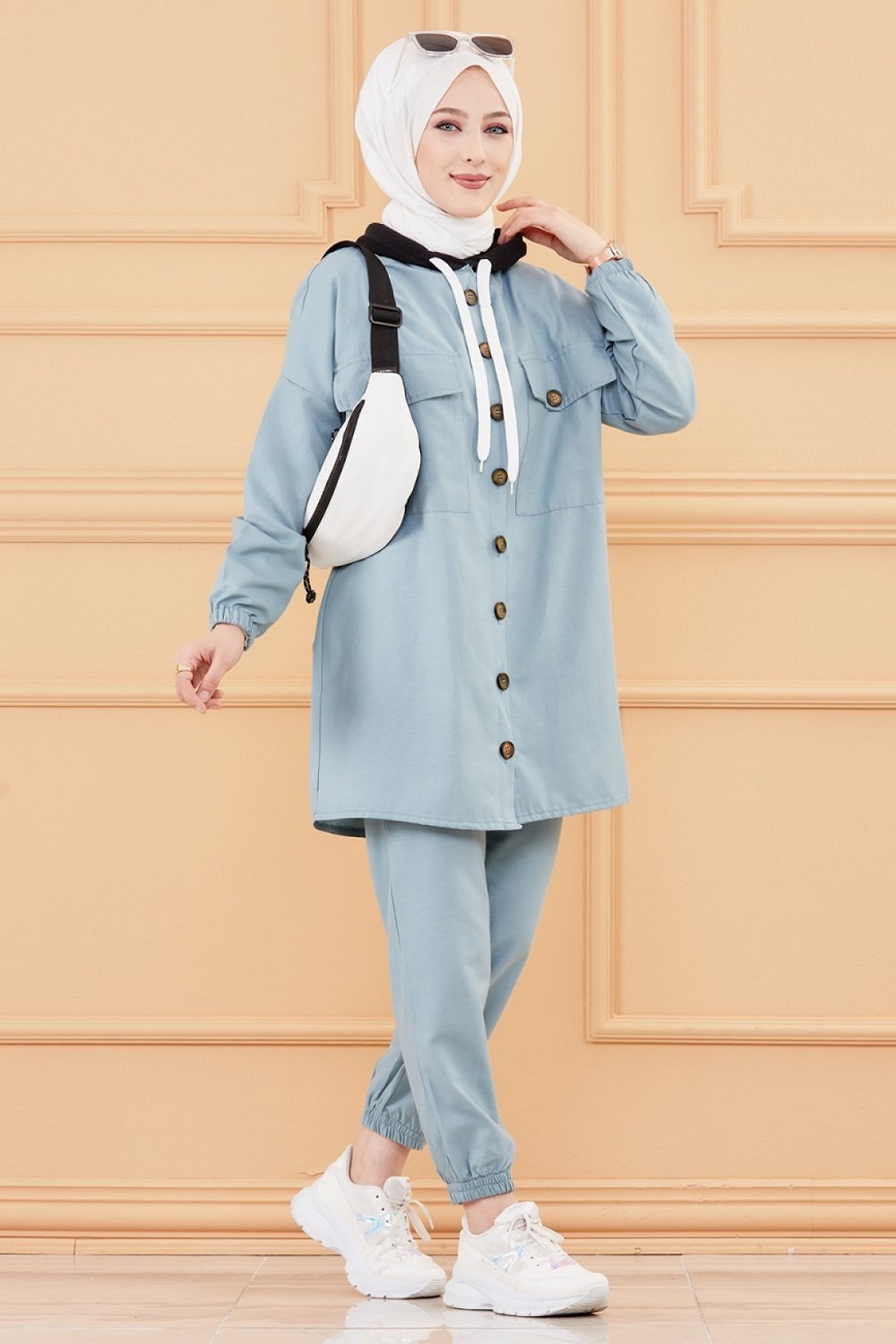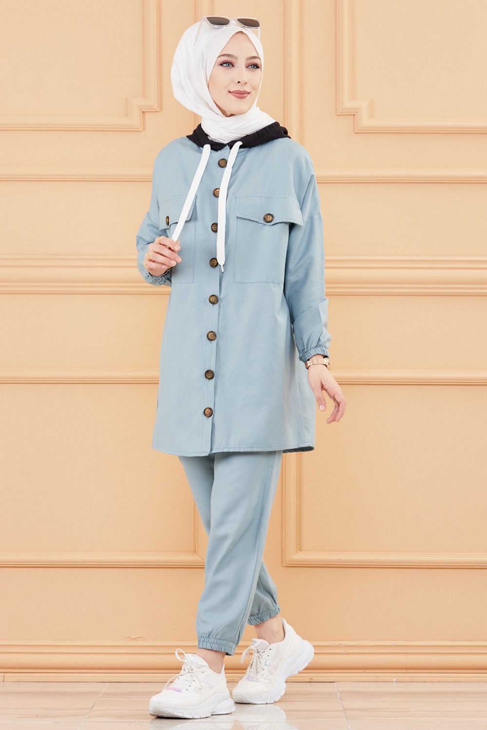 Ensemble 2 pièces tunique + pantalon couleur bleue - Tenue ample et mastour pour femme musulmane - REF. 30588 (35.00 €)