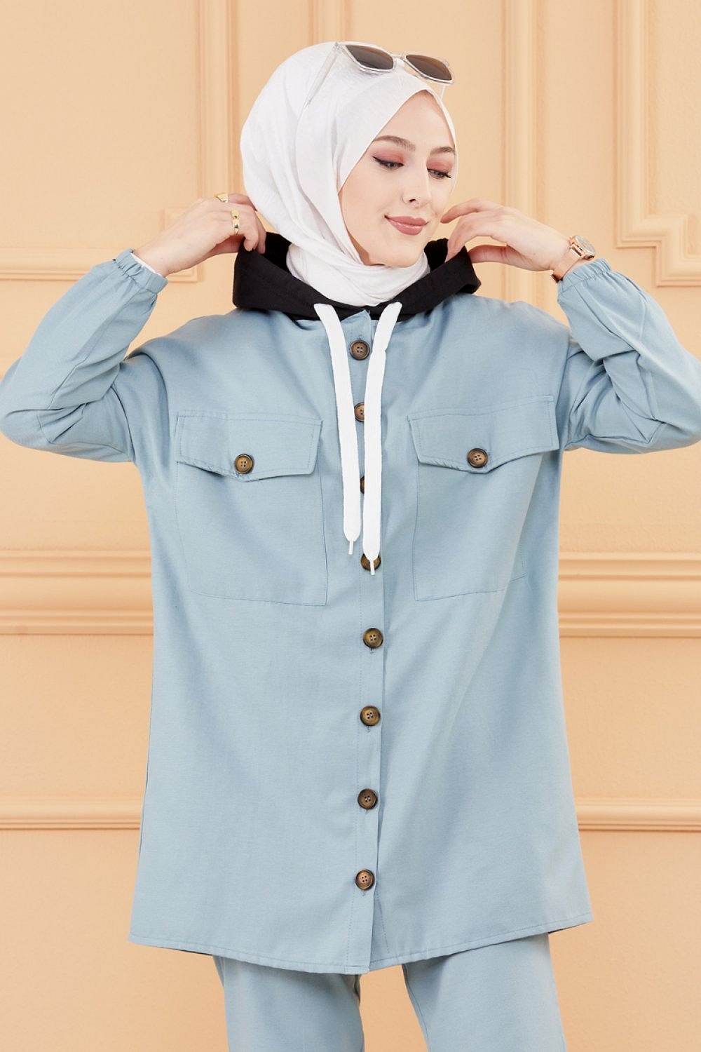 Tunique-Chemise ample boutonnée (Vêtement moderne et décontracté pour hijab) - Couleur bleu Pétrole - REF. 32222 (25.00 €)