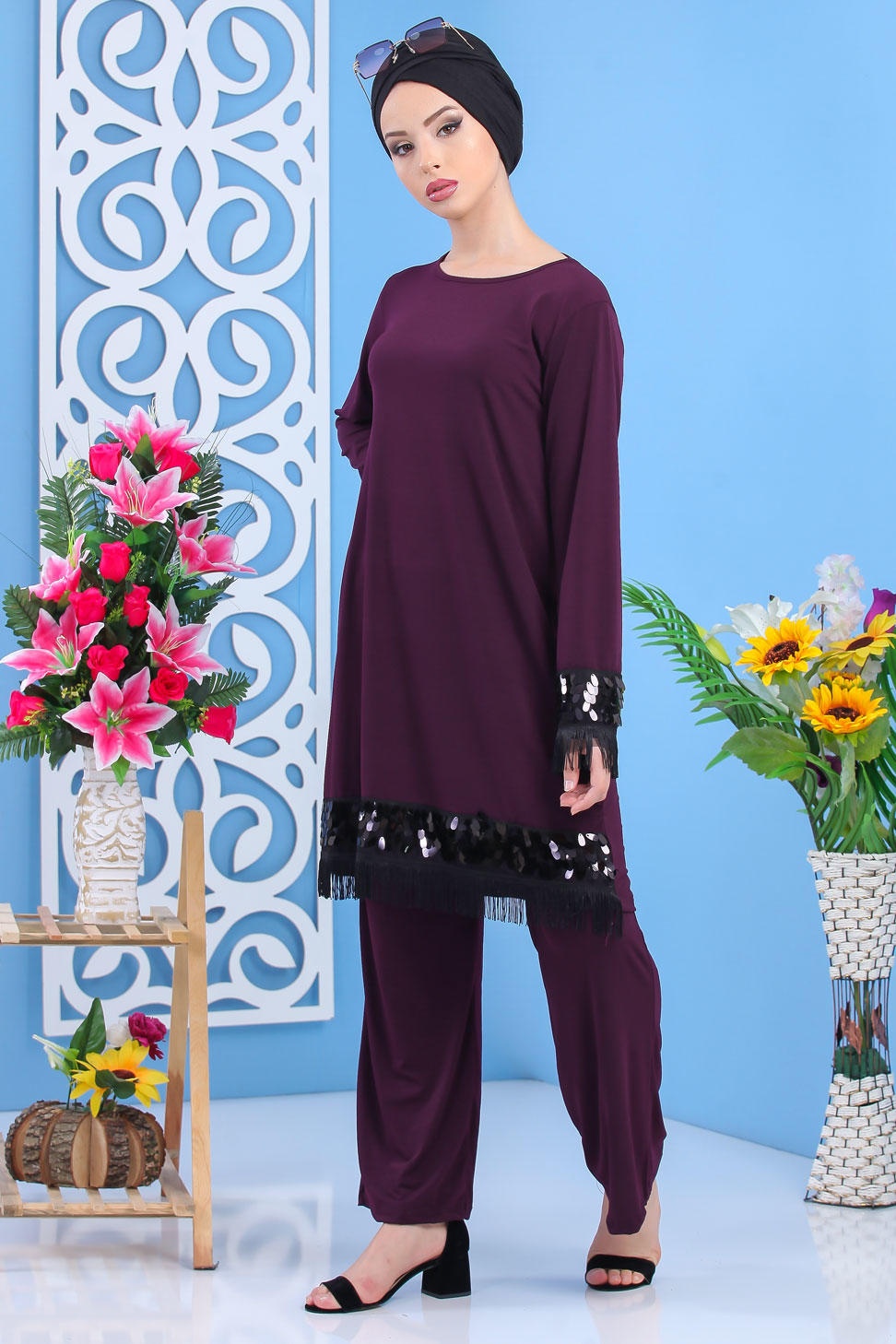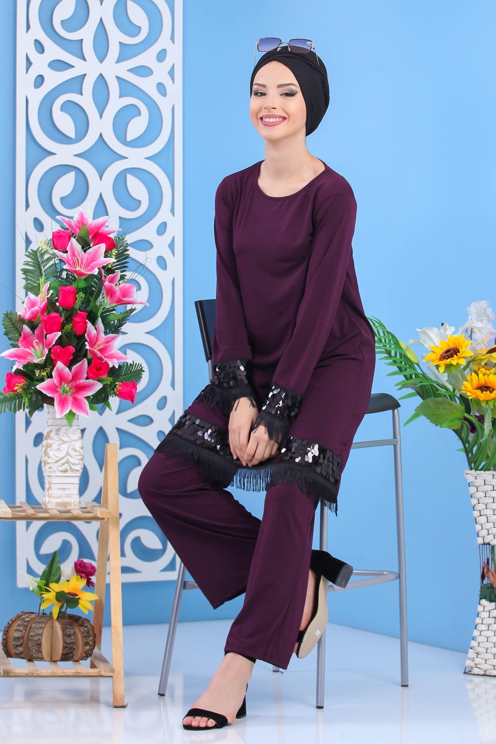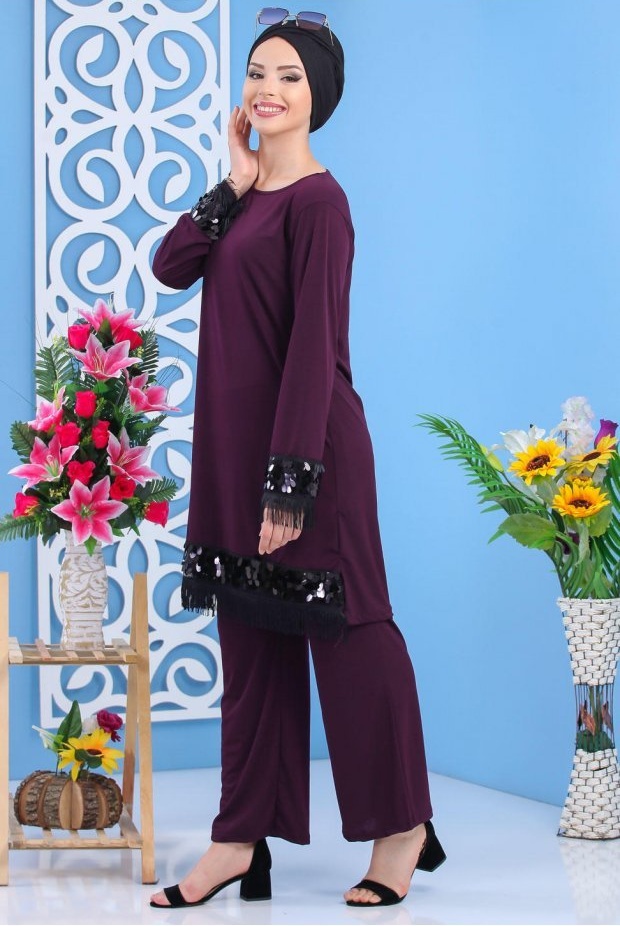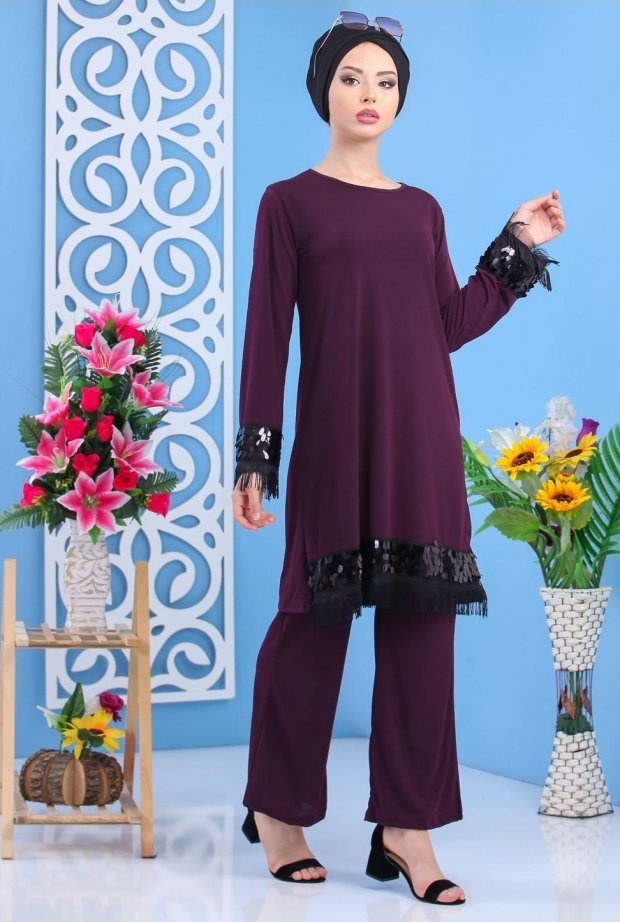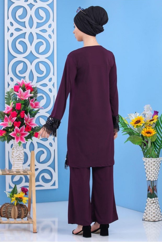 Ensemble habillé tunique et pantalon (Vêtements islamiques modernes en ligne) - Couleur bordeaux - REF. 36405 (39.90 €)