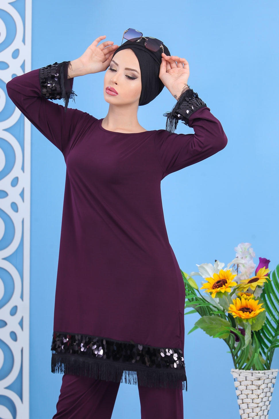 Ensemble Robe et Cardigan (Kimono) - Vetement femme voilée - Couleur violette - REF. 33173 (45.00 €)