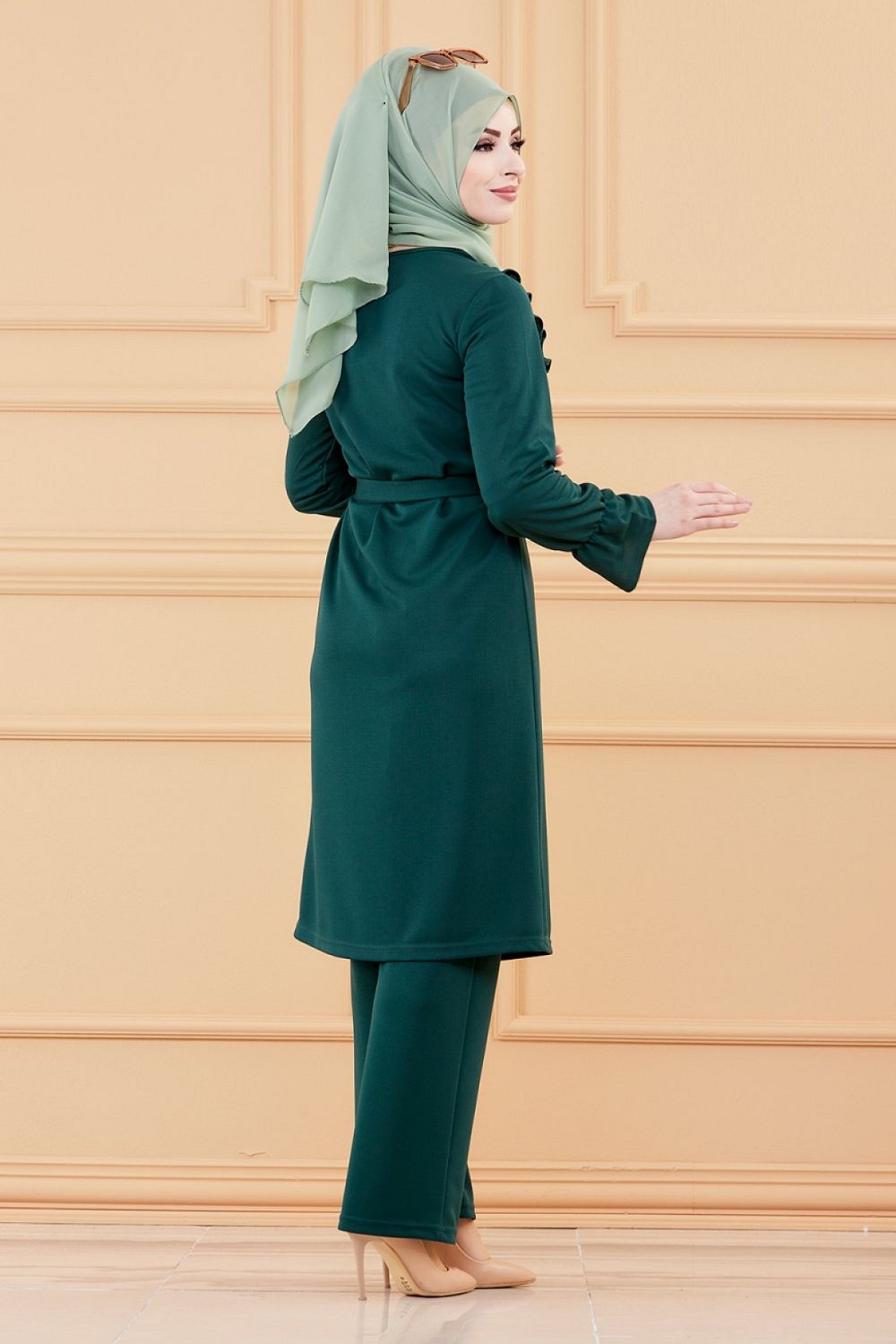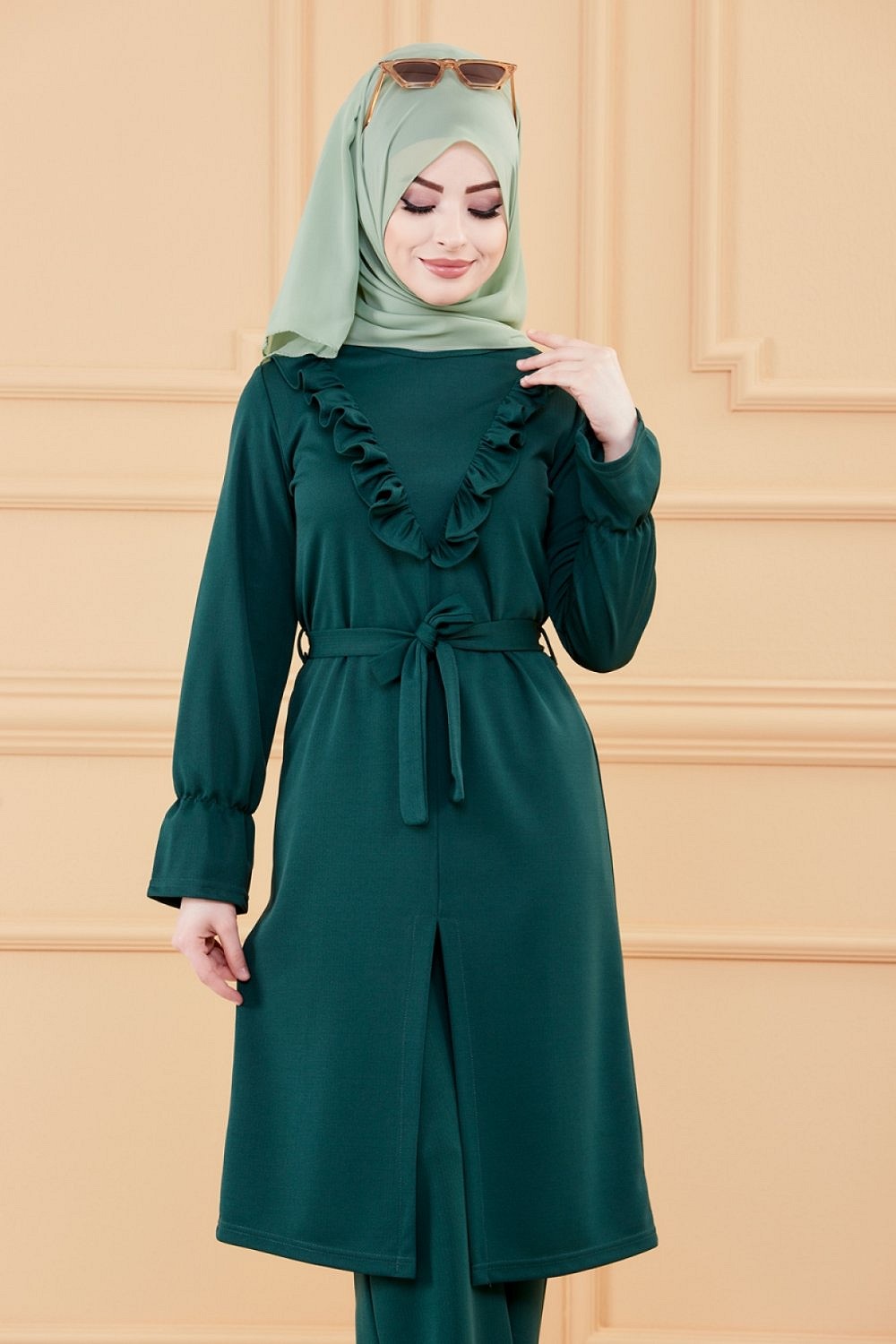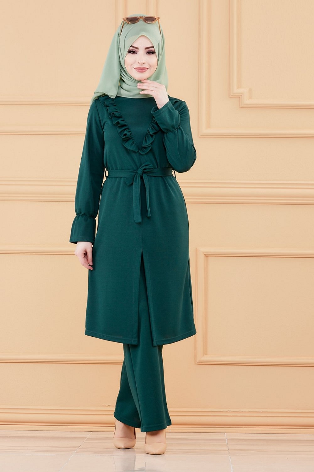 Ensemble classique deux pièces tunique et pantalon (Tenue hidjab pour femme musulmane) - Couleur vert émeraude Vetement & Accessoire