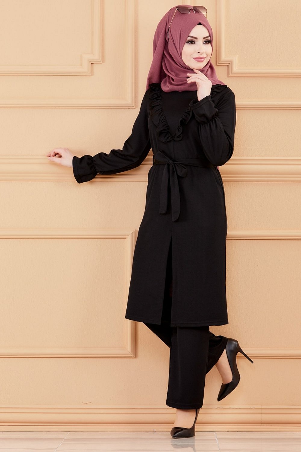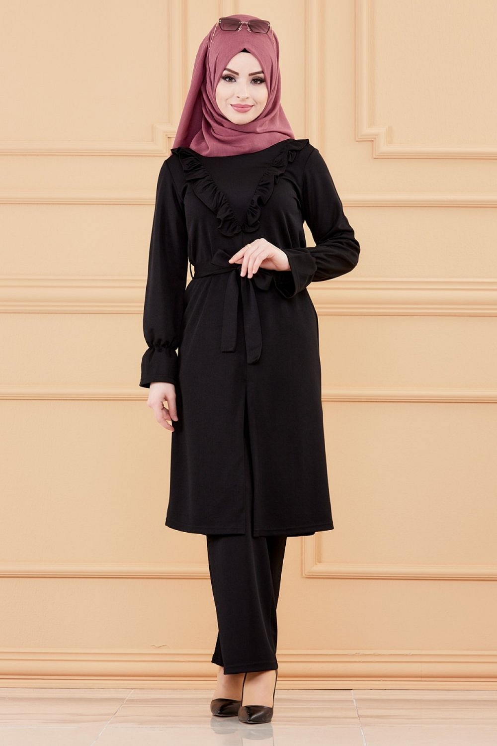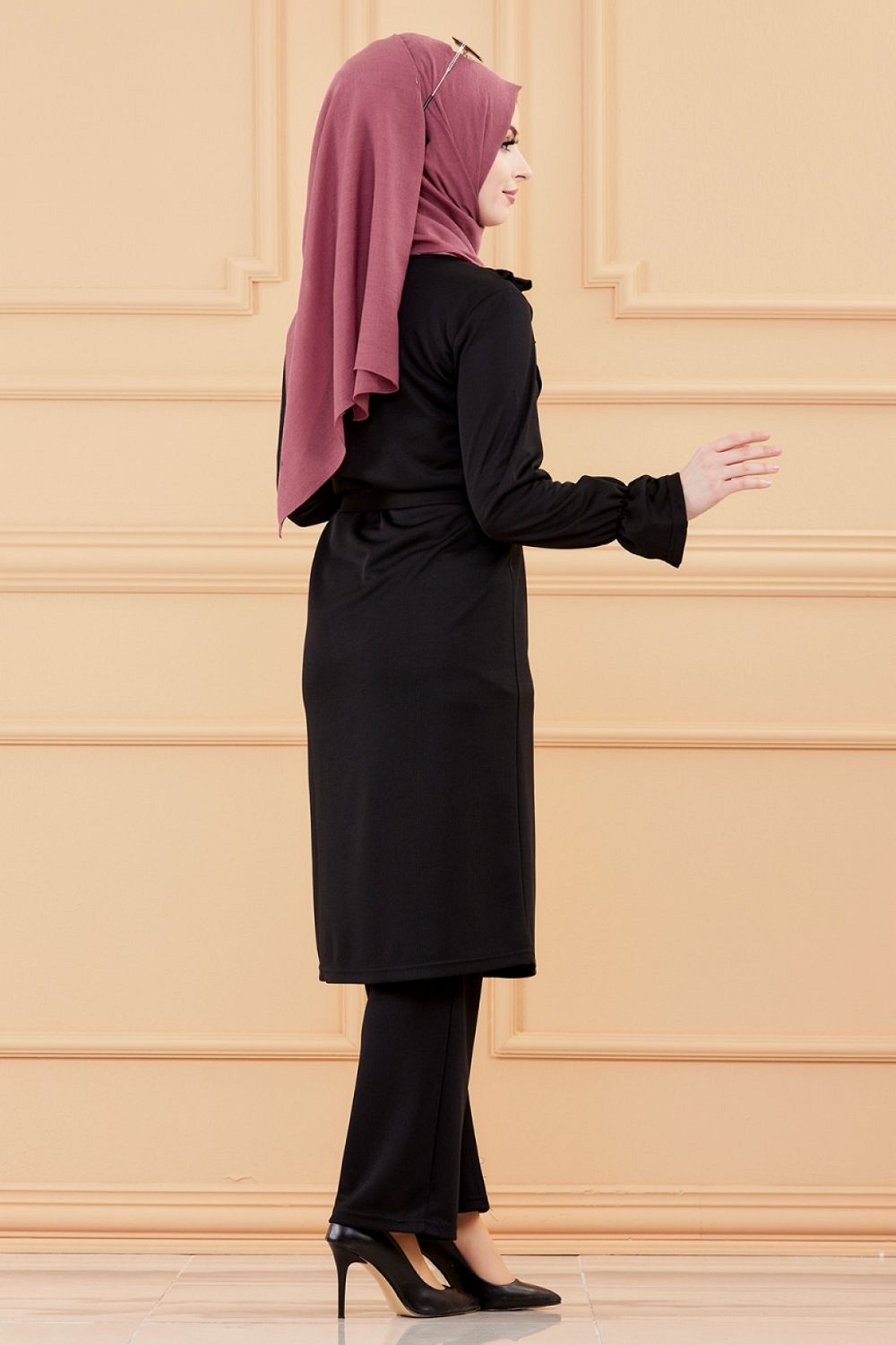 Ensemble classique deux pièces tunique et pantalon (Vetement mastour femme musulmane) - Couleur noir Vetement & Accessoire
