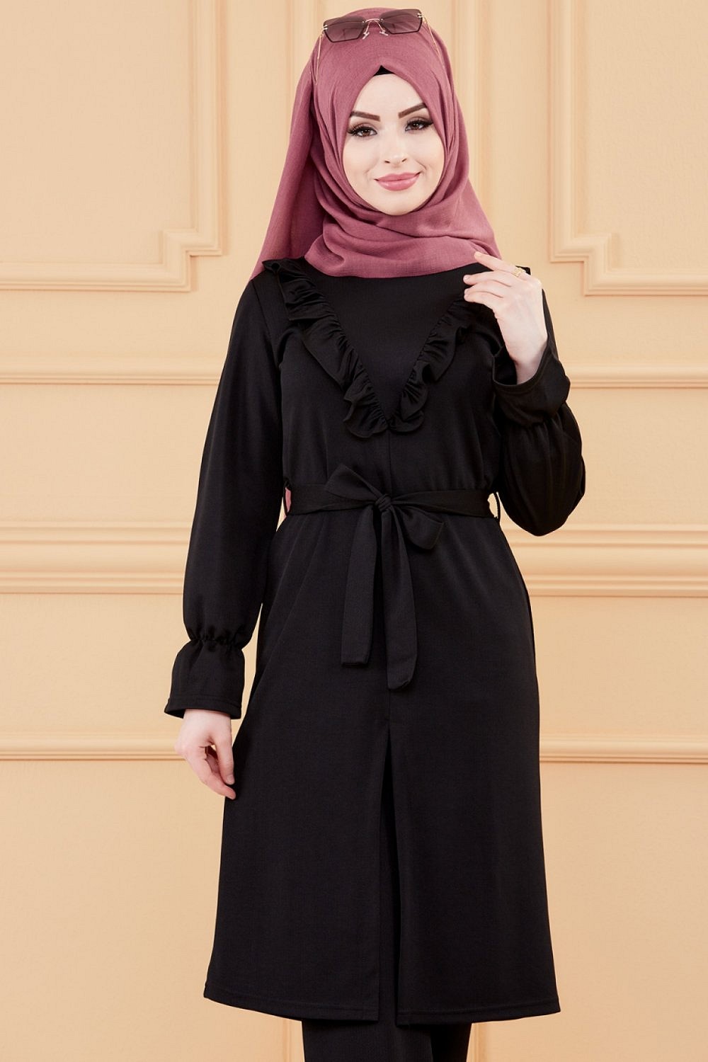 Ensemble style habillé tunique et jupe (Boutique Vêtement Hijab et Mode Musulmane) - Couleur noir - REF. 37133 (35.00 €)