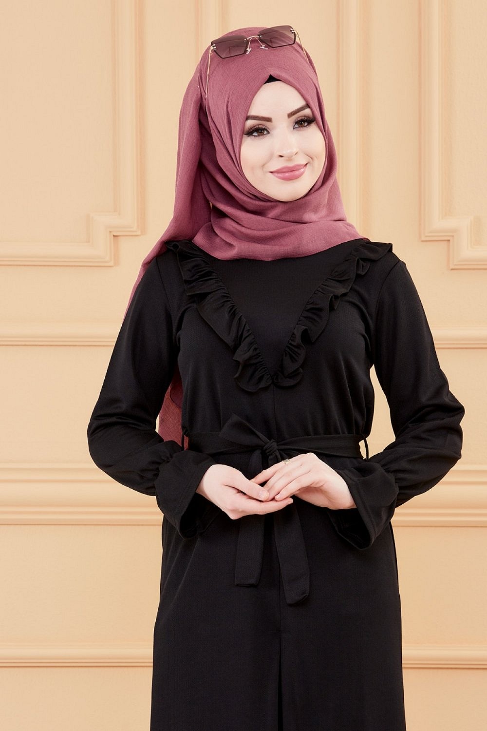 Ensemble ample pour saison automne hiver (Tenue hijab deux pièces : tunique et pantalon) - Couleur noir - REF. 37146 (38.00 €)