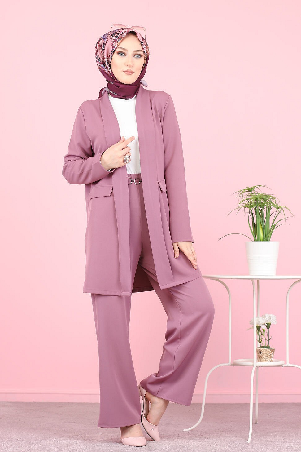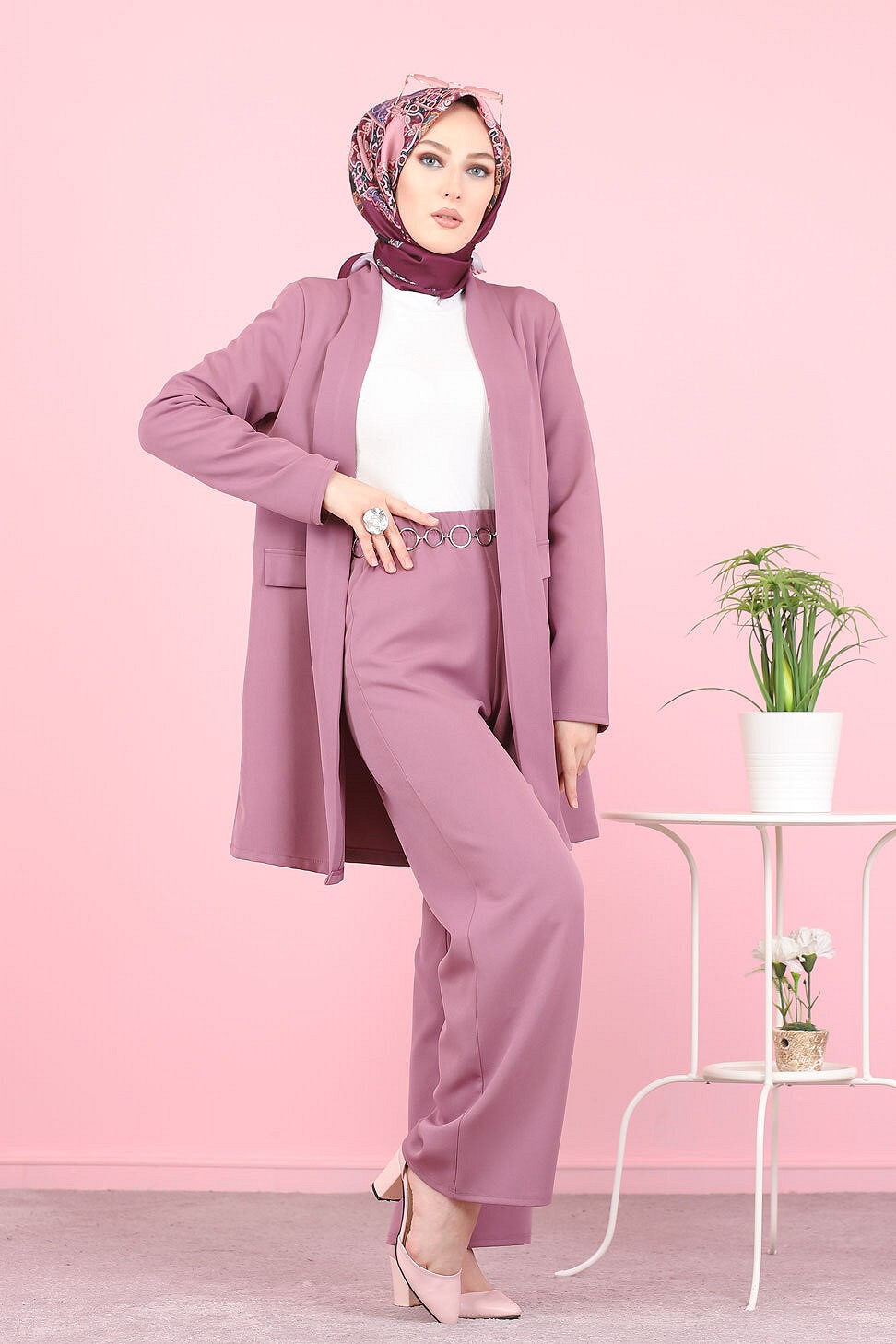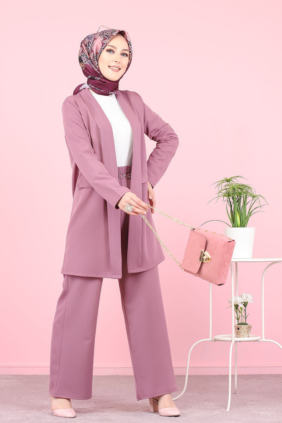 Ensemble classique veste longue et pantalon pour femme (Tenue Hijab Mastour) - Couleur Mauve Vetement & Accessoire