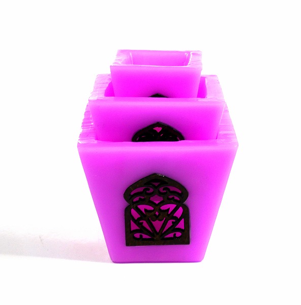 Ensemble de 3 photophores décoratif, provenant de Marrakech (Maroc), peint en violet, émaillé, jolies ciselures en forme d'étoile, de croissant lunaire...