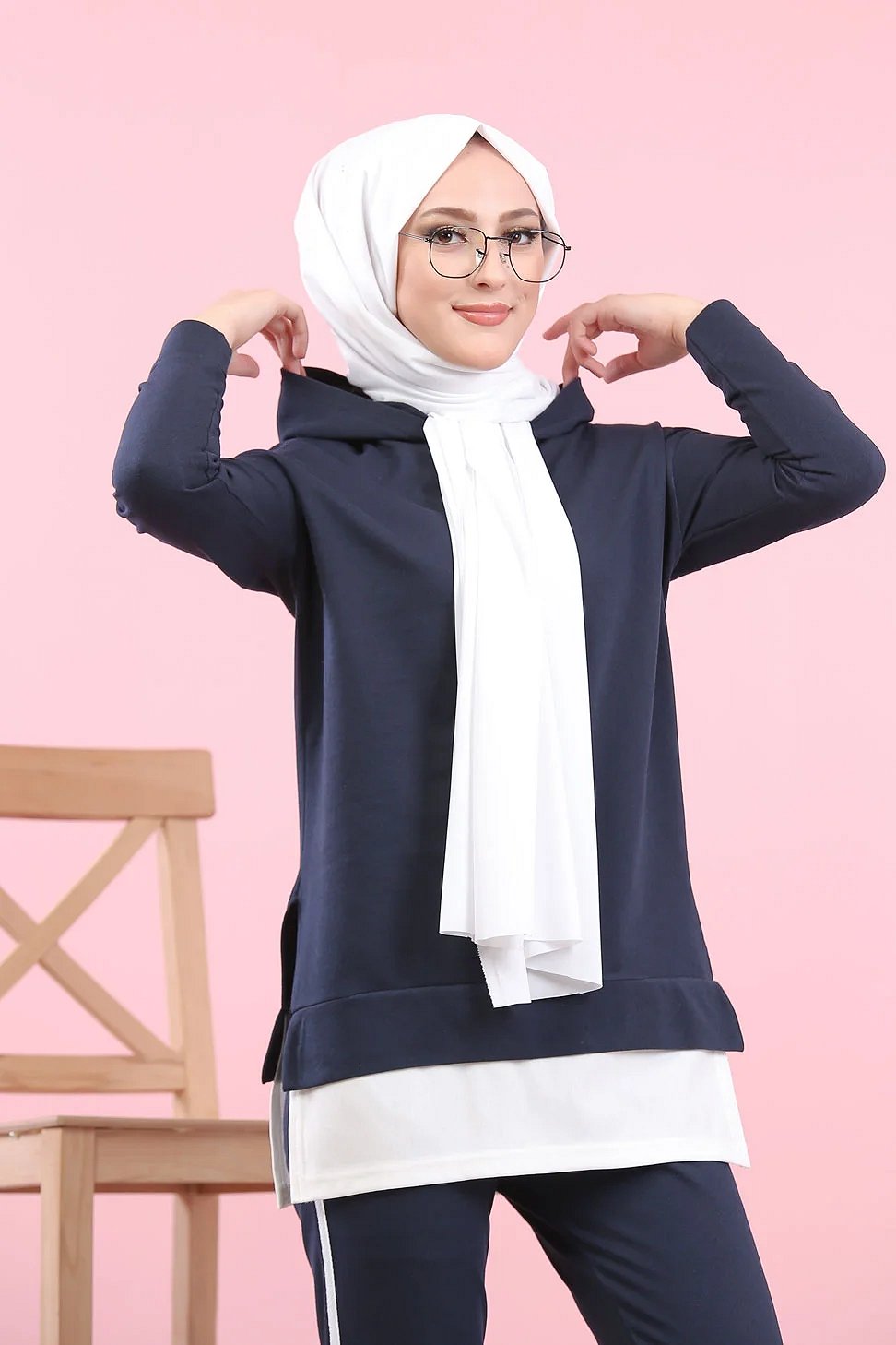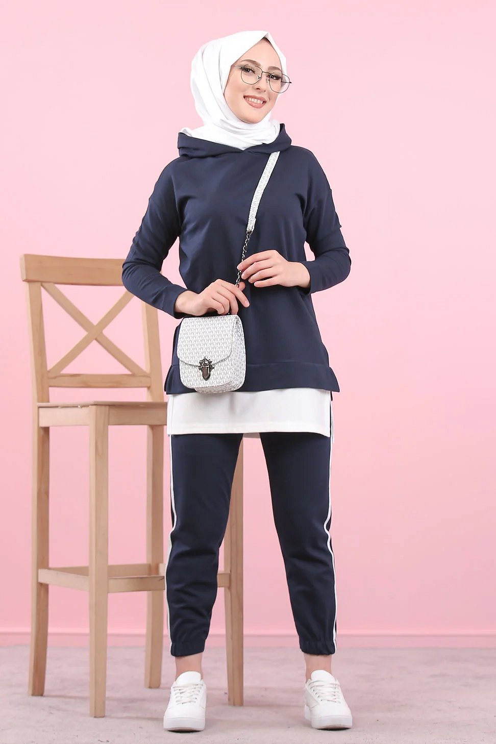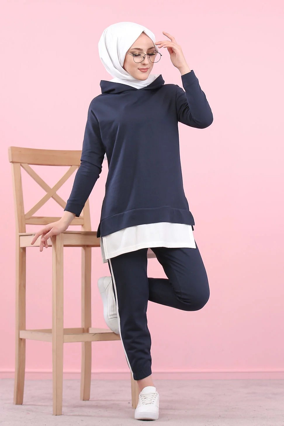 Ensemble survêtement 2 pièces décontracté (Hijab Sport femme musulmane) - Couleur bleu marine - REF. 32290 (29.90 €)