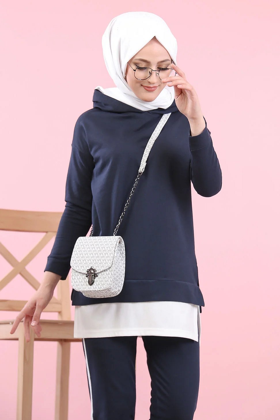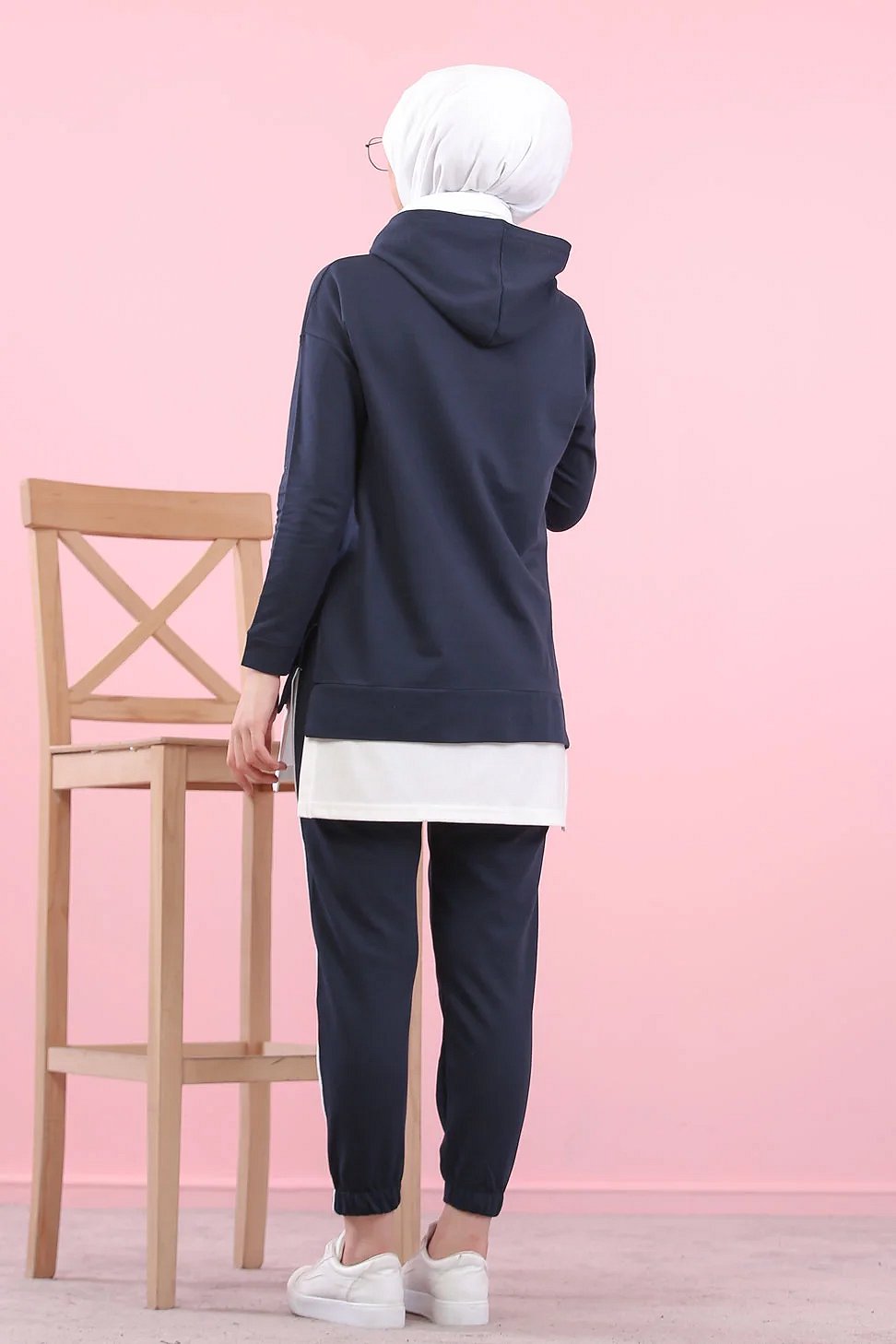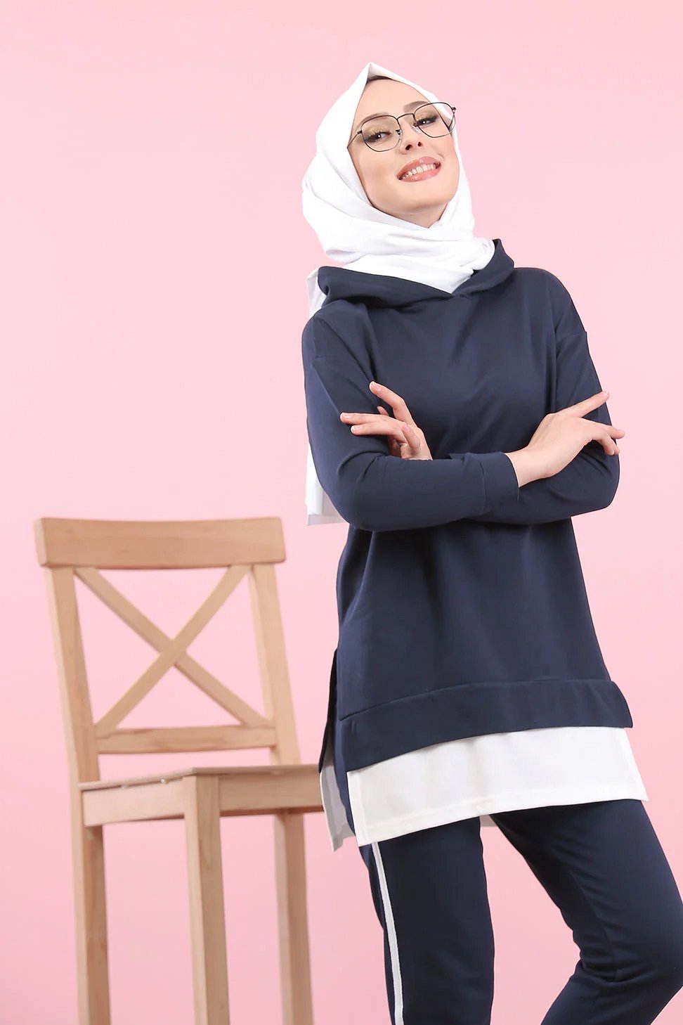 Ensemble survêtement 2 pièces décontracté (Hijab Sport femme musulmane) - Couleur bleu marine - REF. 32290 (29.90 €)