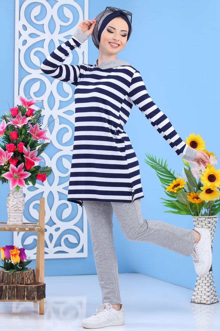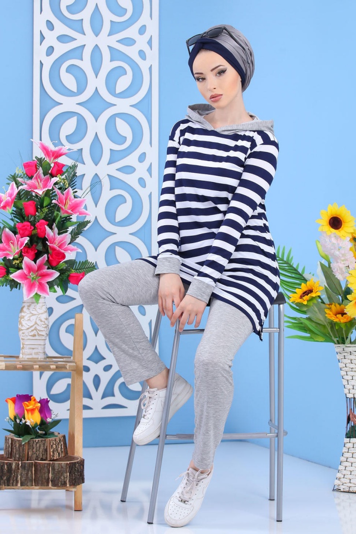 Ensemble survêtement décontracté (Vêtement sport femme voilée) - Couleur gris clair et foncé - REF. 36674 (29.00 €)
