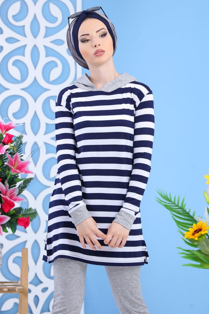 Tunique décontractée avec capuche (Vetement moderne femme voilée) - Couleur anthracite - REF. 35559 (23.00 €)