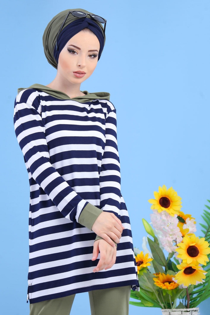 Tunique sweat long avec capuche pour femme (Vetement hijab moderne et sport) - Couleur bleu marine - REF. 35558 (23.00 €)