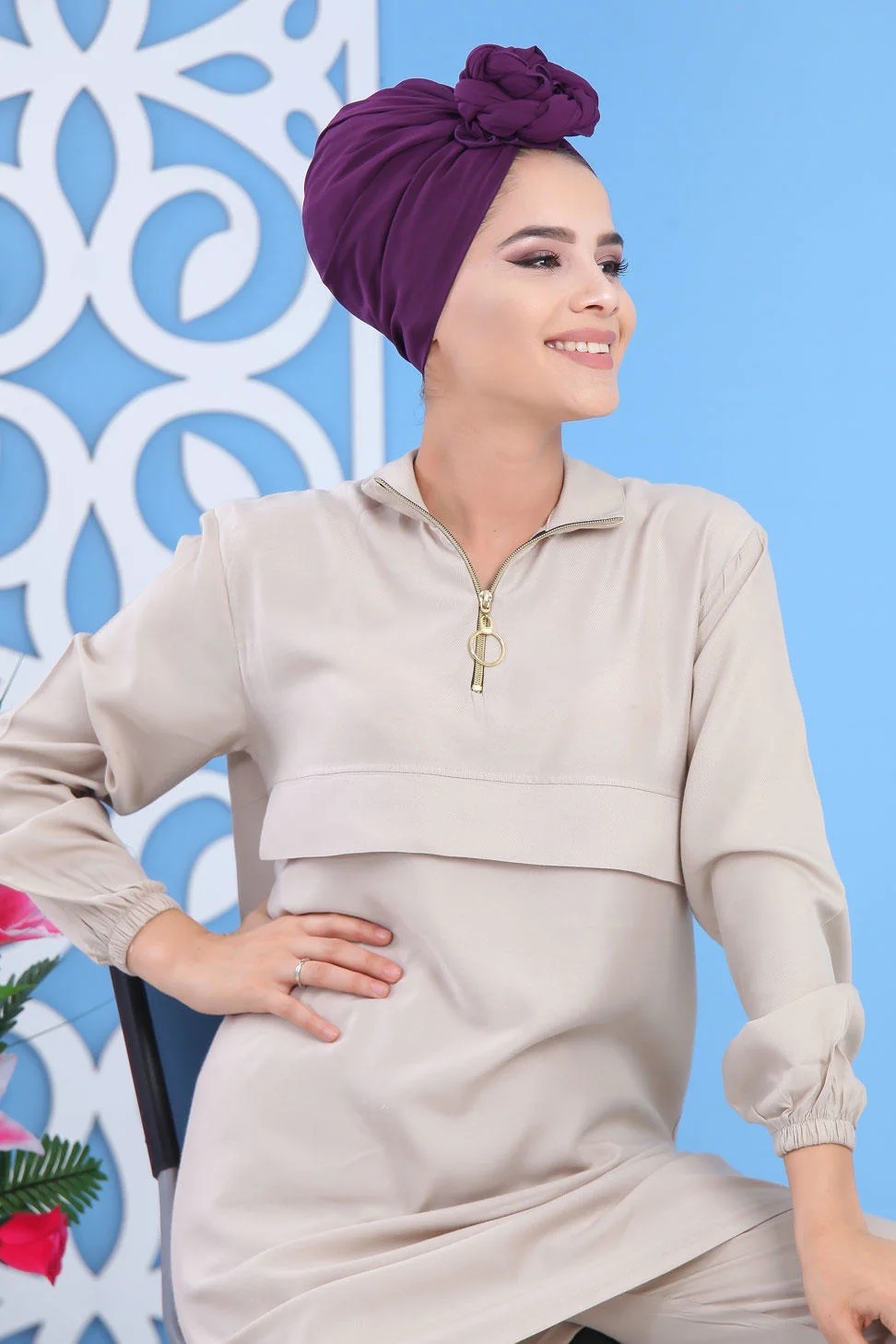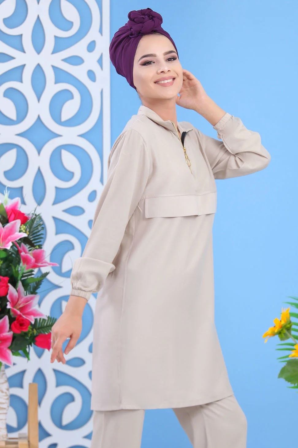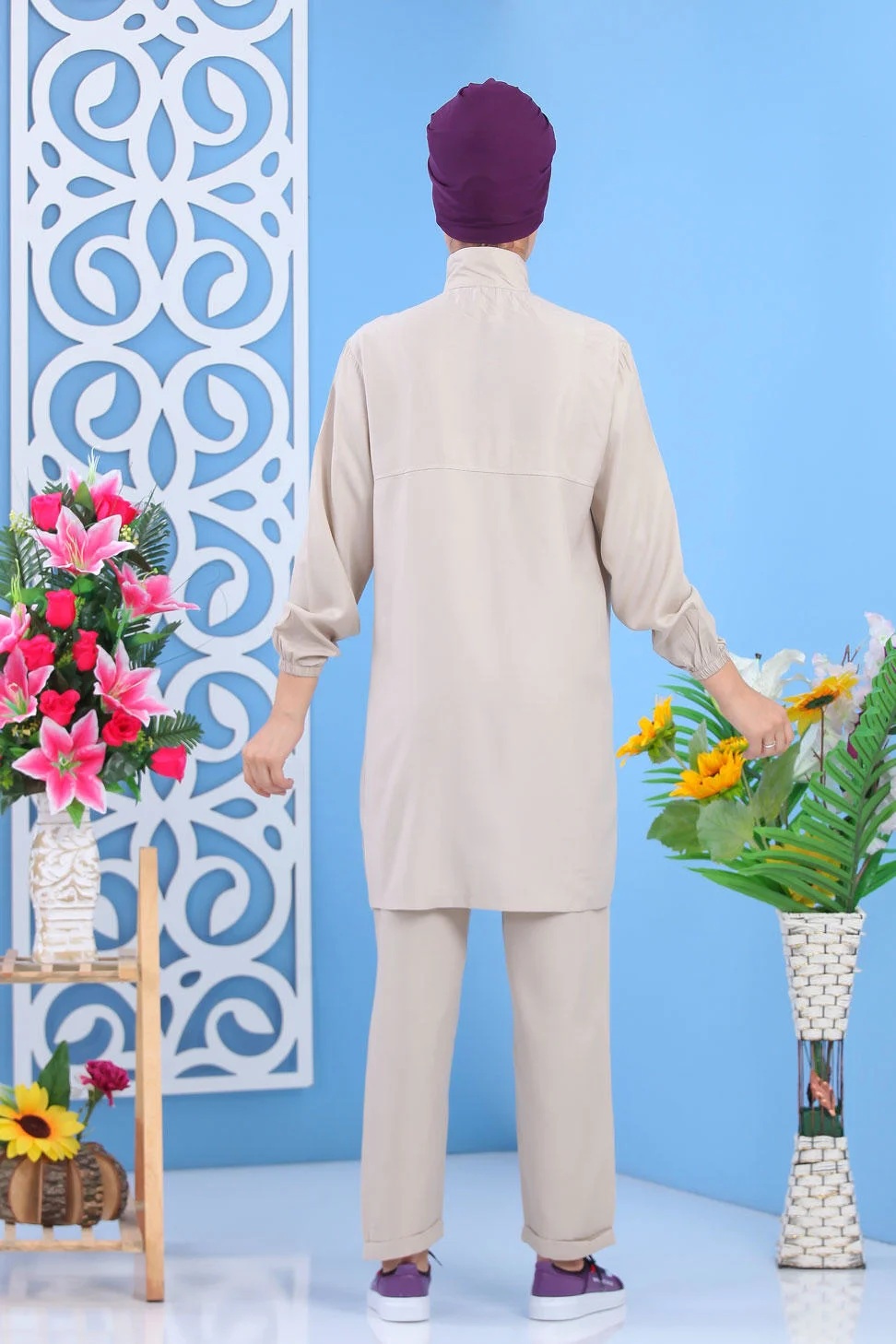 Ensemble décontracté pour femme : Tunique à capuche et Pantalon (Vêtement de sport pour musulmane) - Couleur beige - REF. 36228 (32.00 €)