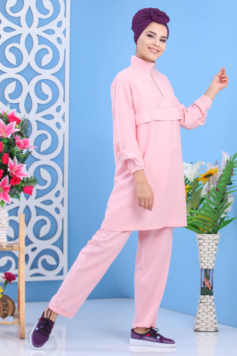 Ensemble décontracté sport femme 2 pièces : tunique + pantalon - Couleur rose clair Vetement & Accessoire