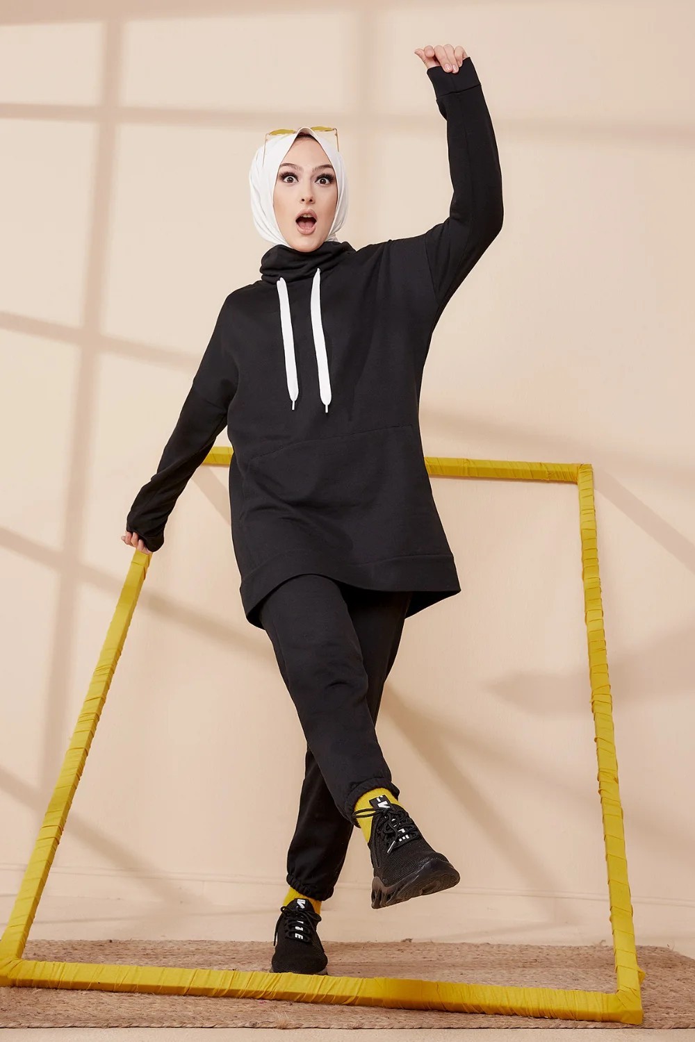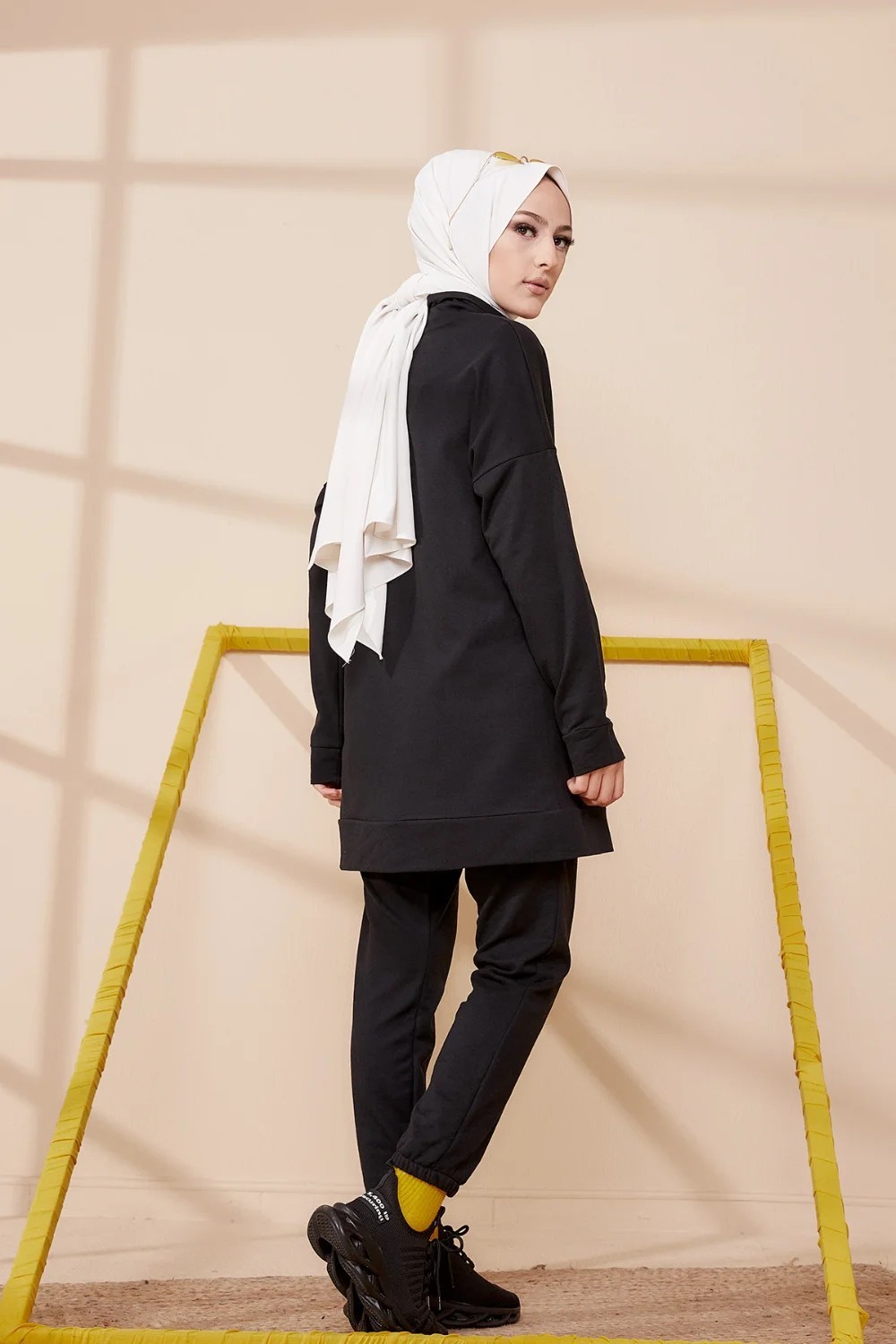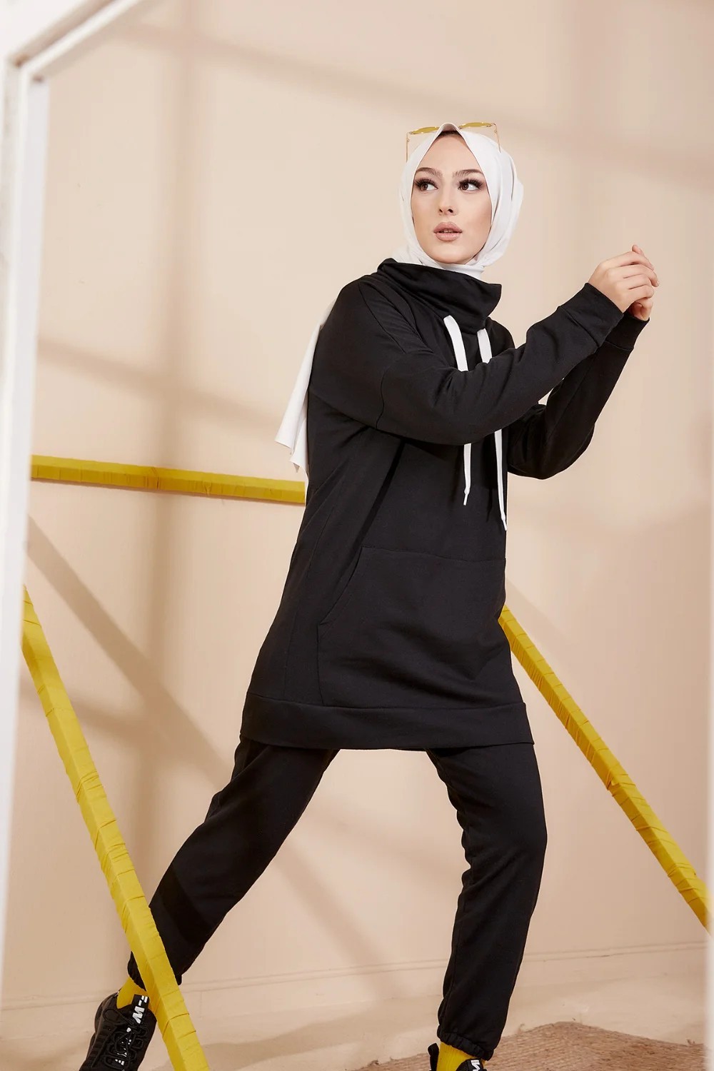 Ensemble decontracte tunique et pantalon (Tenue de Sport Hijab) - Couleur noir
